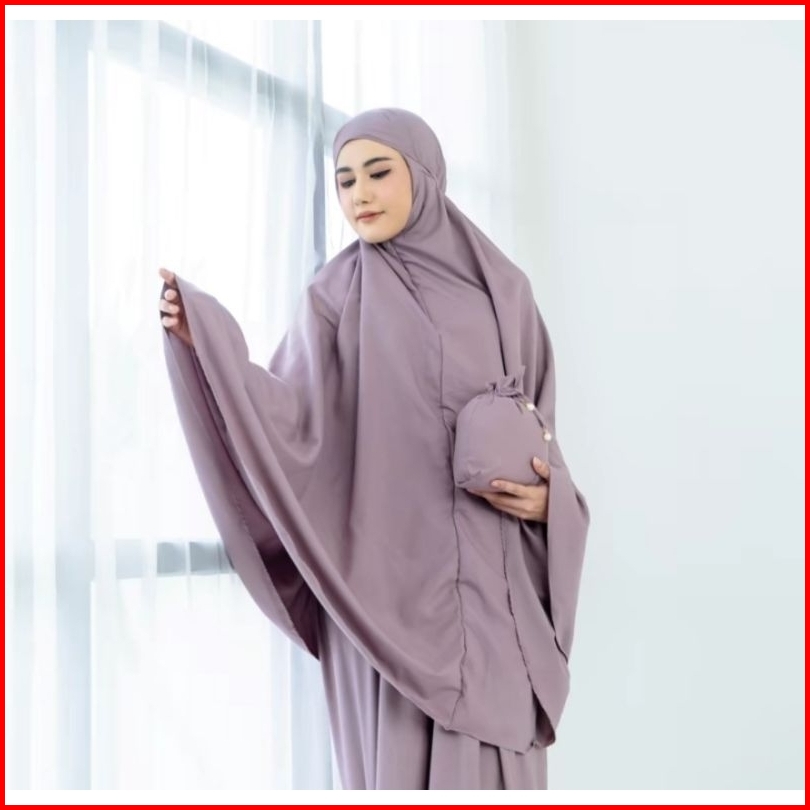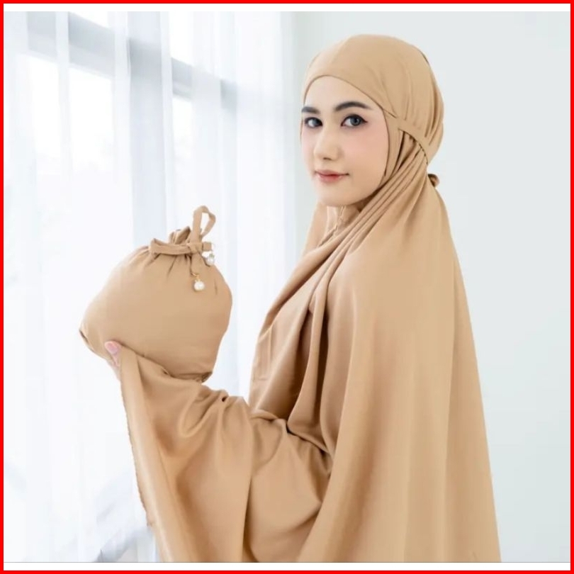 Mukena Dewasa Traveling 2in1 Resleting Premium Style Korea Katun Mikro Free Tas Pouch Mutiara