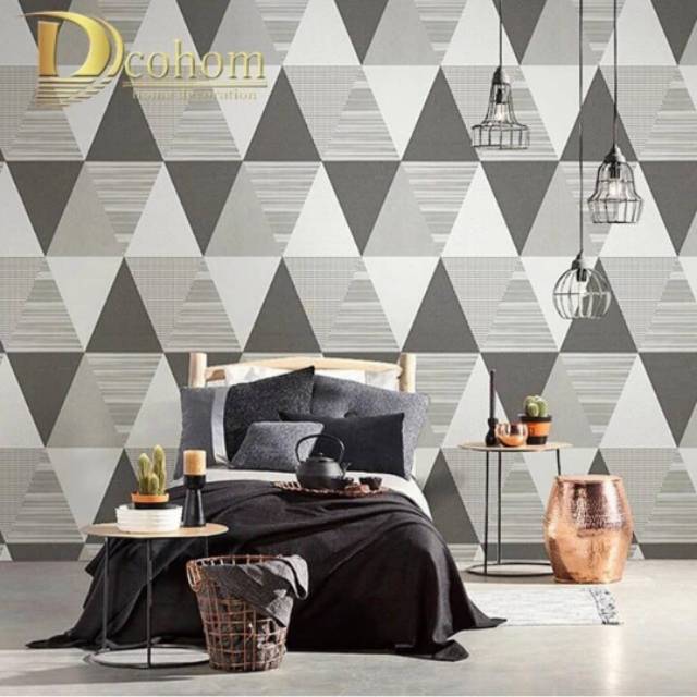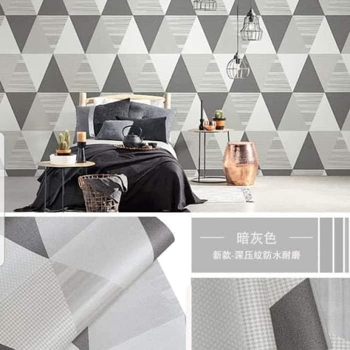 Wallpaper Dinding Motif Segitiga Abu Abu UKuran Panjang 8 Meter x Lebar 45Cm