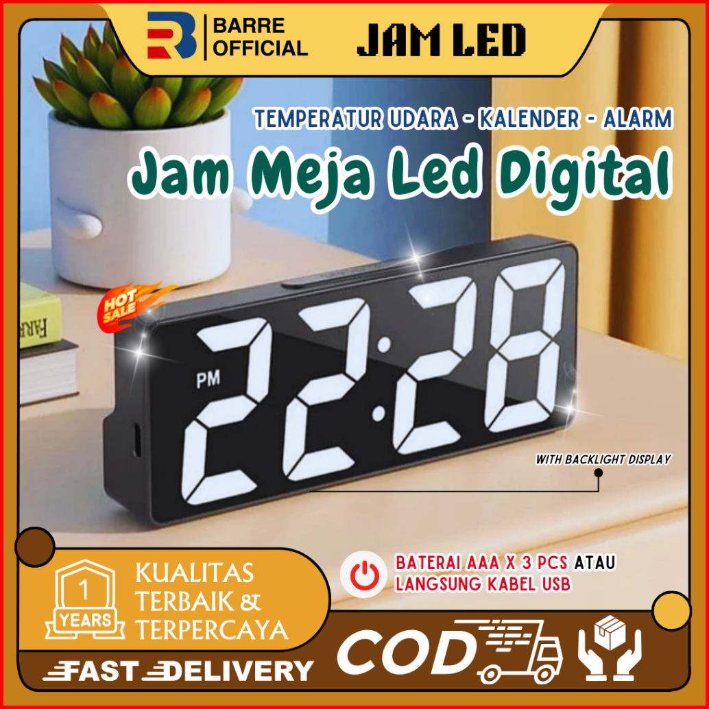 Barre Jam Meja Digital Led Weker Table Tidur Digital Alarm Clock 3d Modern Snooze Mode Kecerahan
