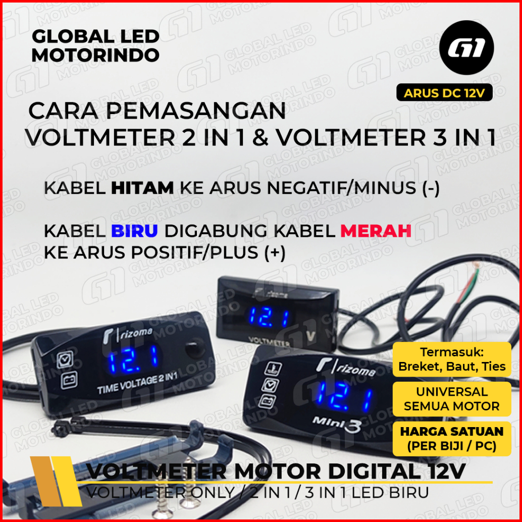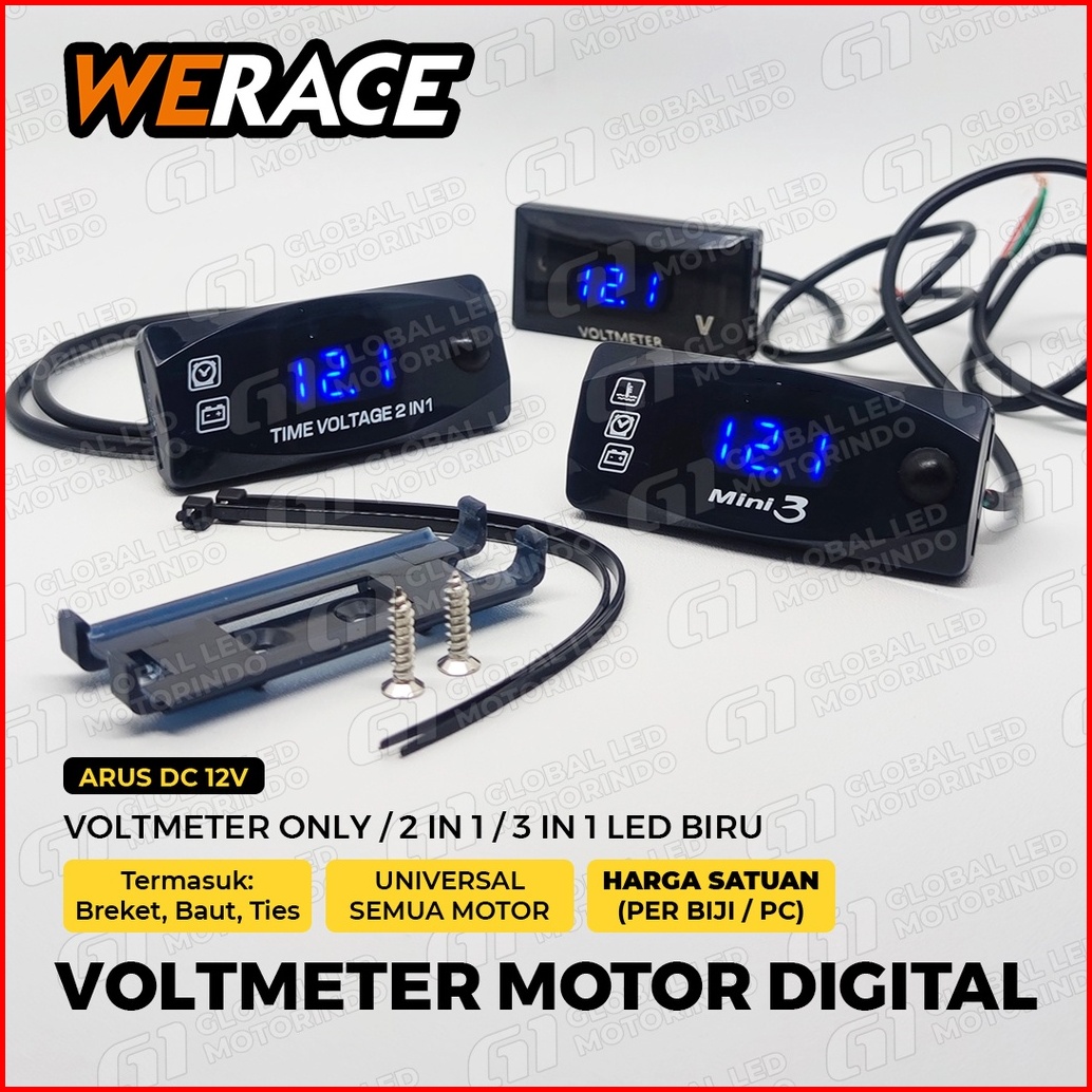 Werace Voltmeter Motor Digital Only 2in1 3in1 Voltase Dan Jam 12v