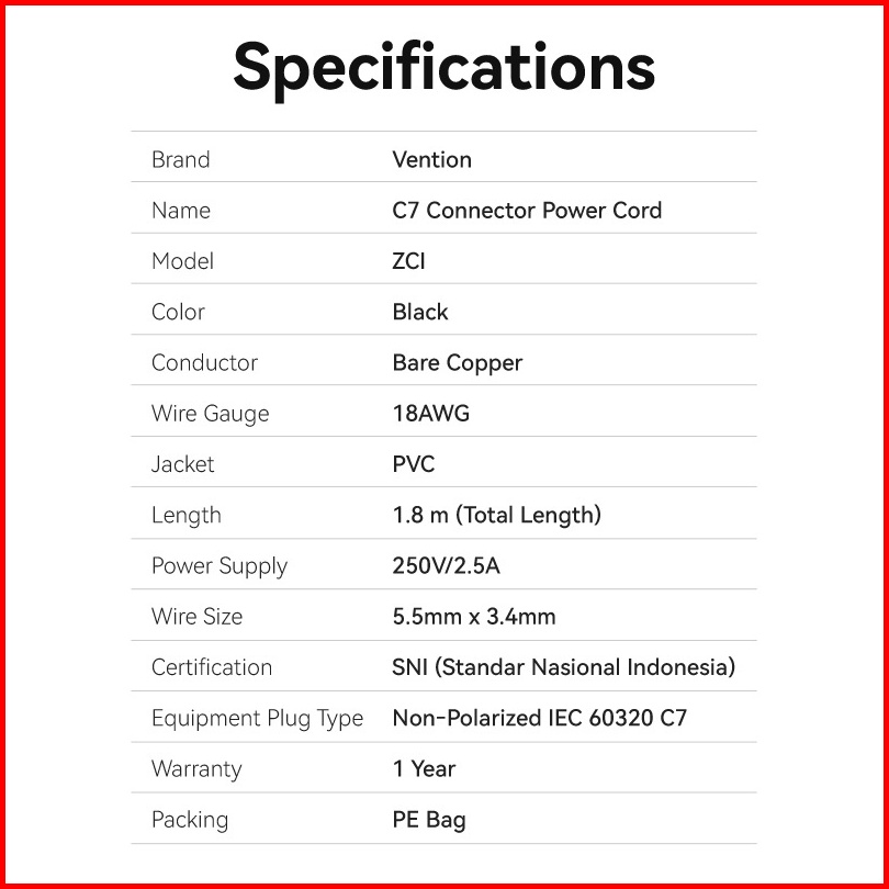 Vention Kabel Power Printer C7 Connector Angka 8 Ac Cord Ori