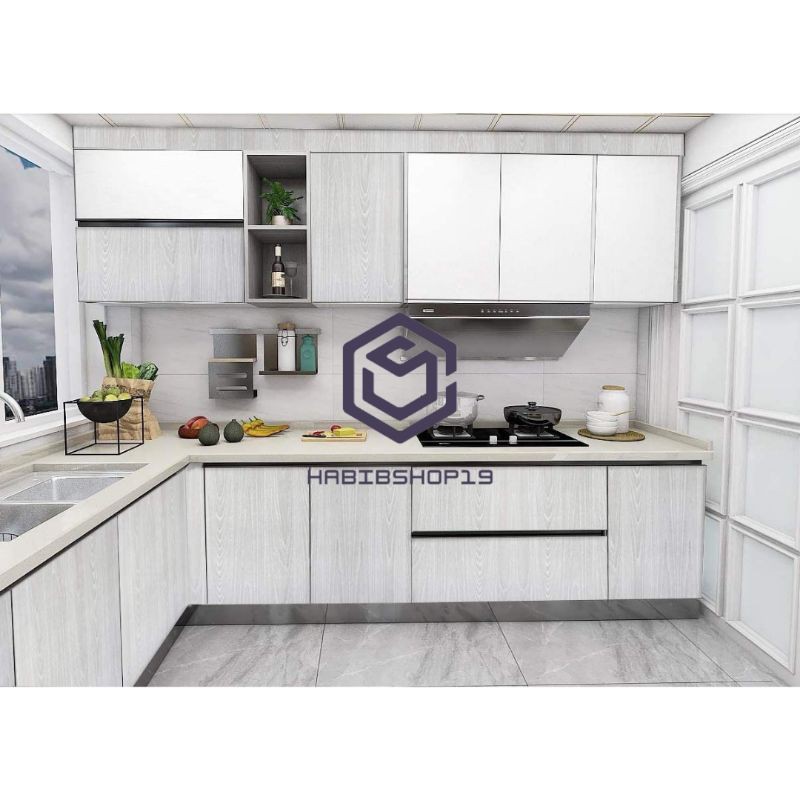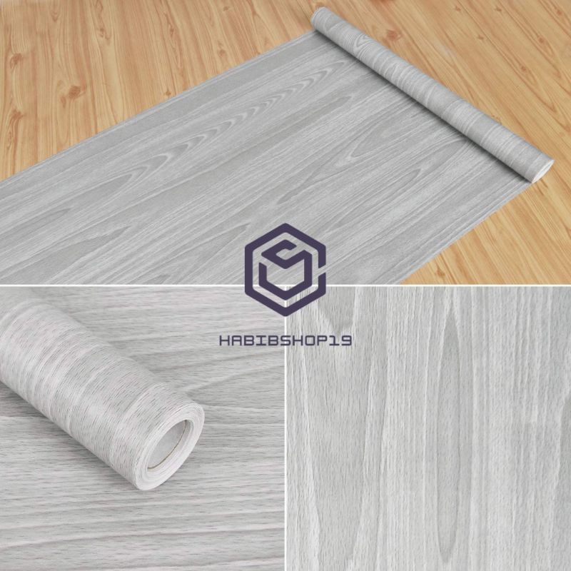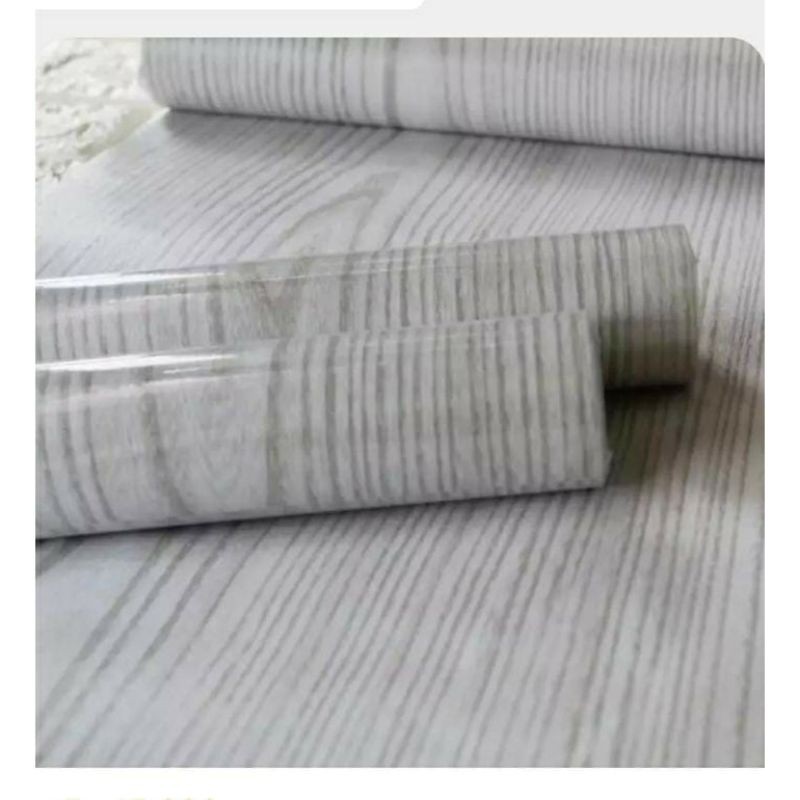 Wallpaper Stiker Dinding Motif Kayu Serat Abu New 10m x 45cm