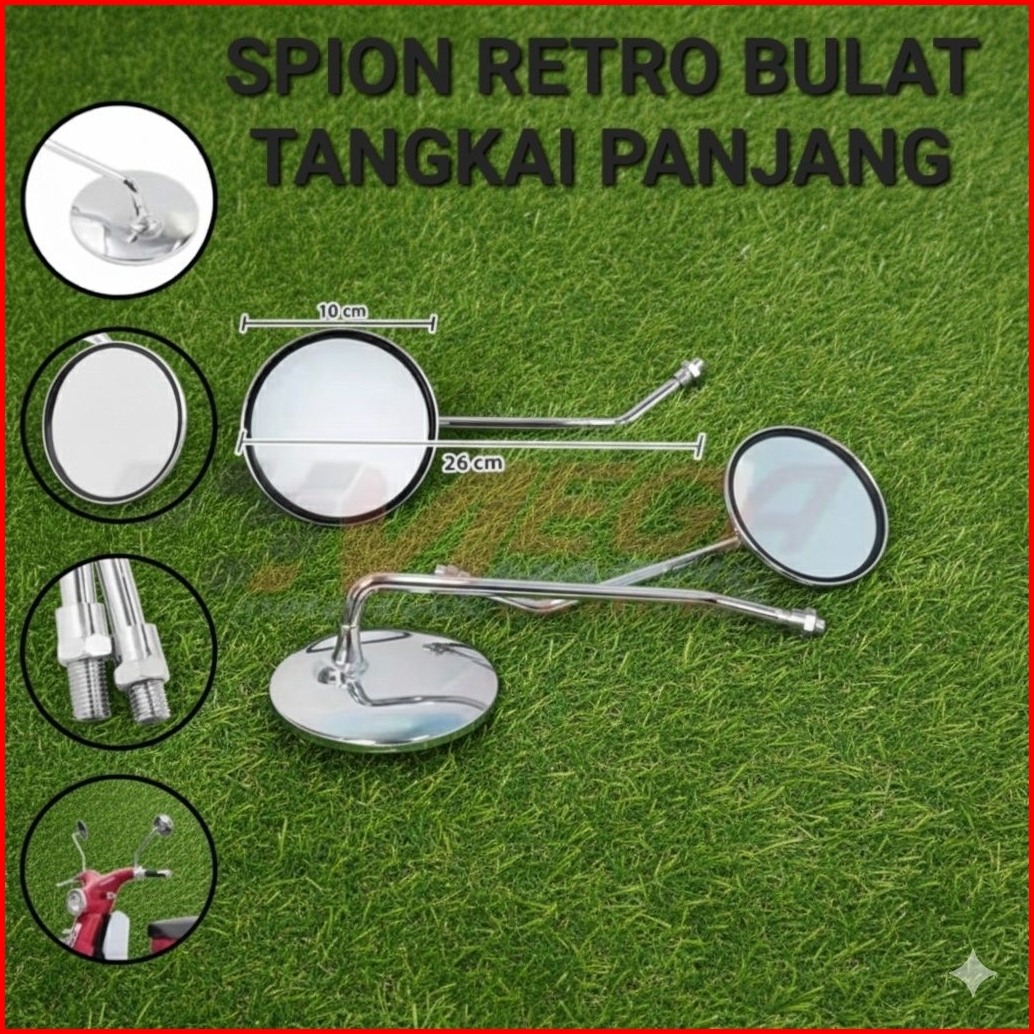 Acc Spion Retro Bulat Tangkai Panjang Genio Scoopy C70 Cb Fazzio Fino Universal Isi Sepasang