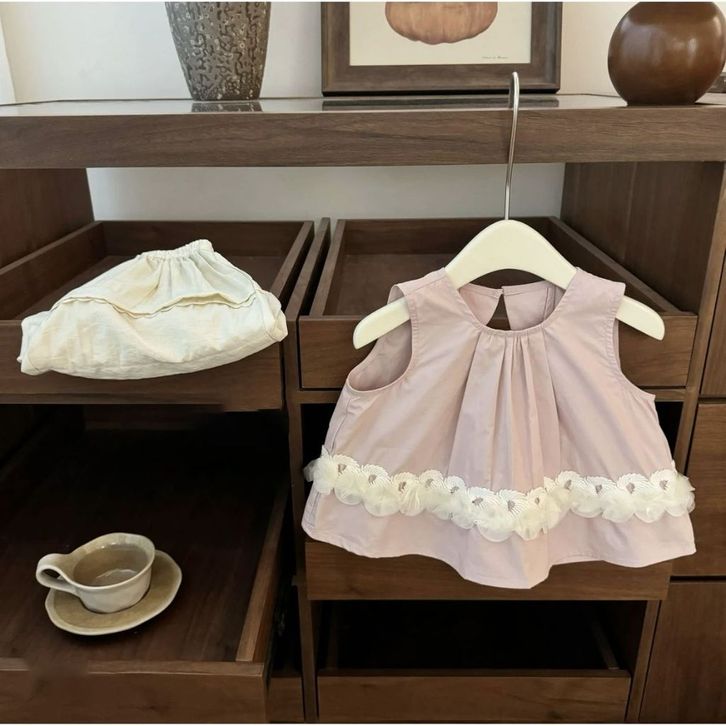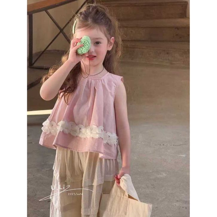 Baju Anak Perempuan Style Terbaru Setelan Pricess Anak Perempuan Atasan Manis Tanpa Lengan + Celana Kulto Panjang