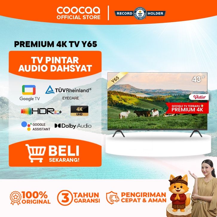 NEW COOCAA TV 43 inch Y65 - 4K GOOGLE TV - Dolby Audio - Eye Care - HDR10 - Find Remote - COOCAA 43Y65