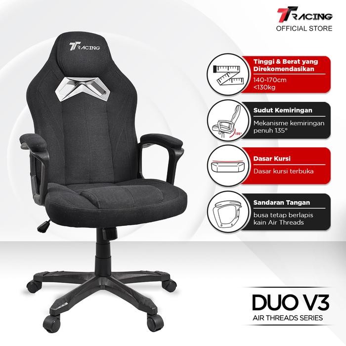 TTRacing Duo V3 Gaming Chair | Kursi Gaming [Garansi 2 Tahun] - Black