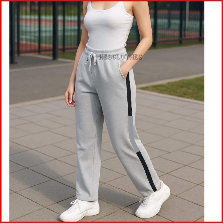 Hesclothes Celana Training Wanita Dewasa Remaja Bahan Babyterry Ukuran M-xxl Warna Hitam Abu Misty