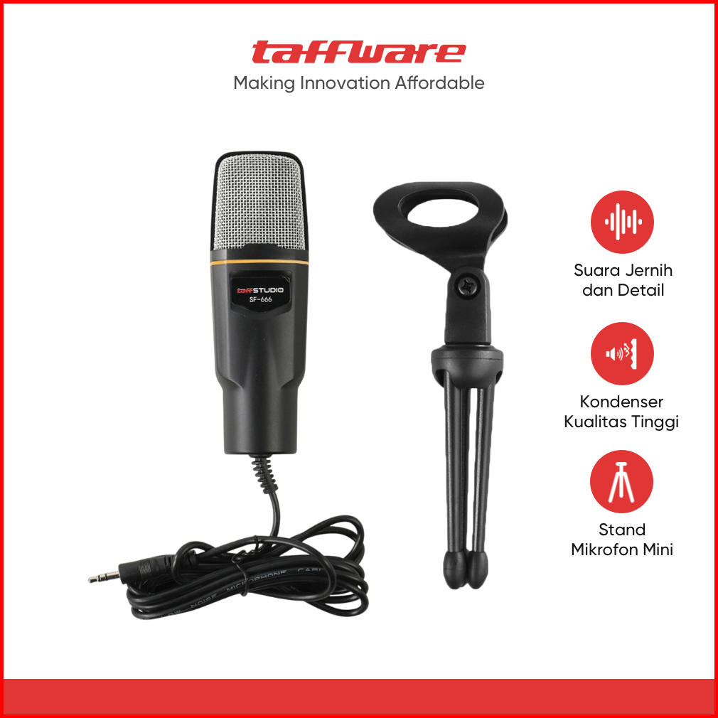 Taffstudio Mikrofon Kondenser Studio Dengan Stand - Sf-666 - Black