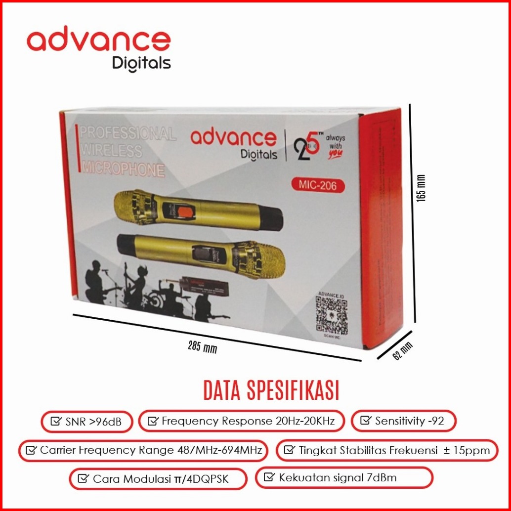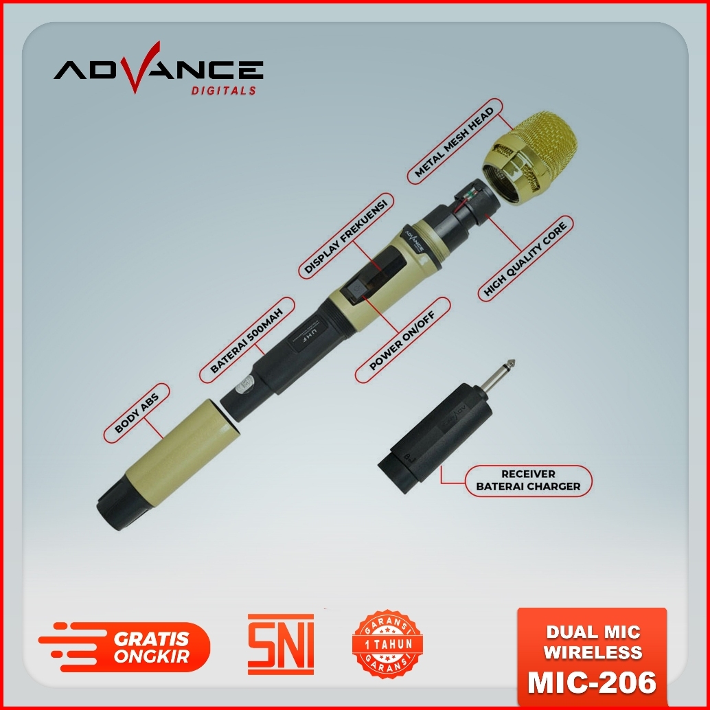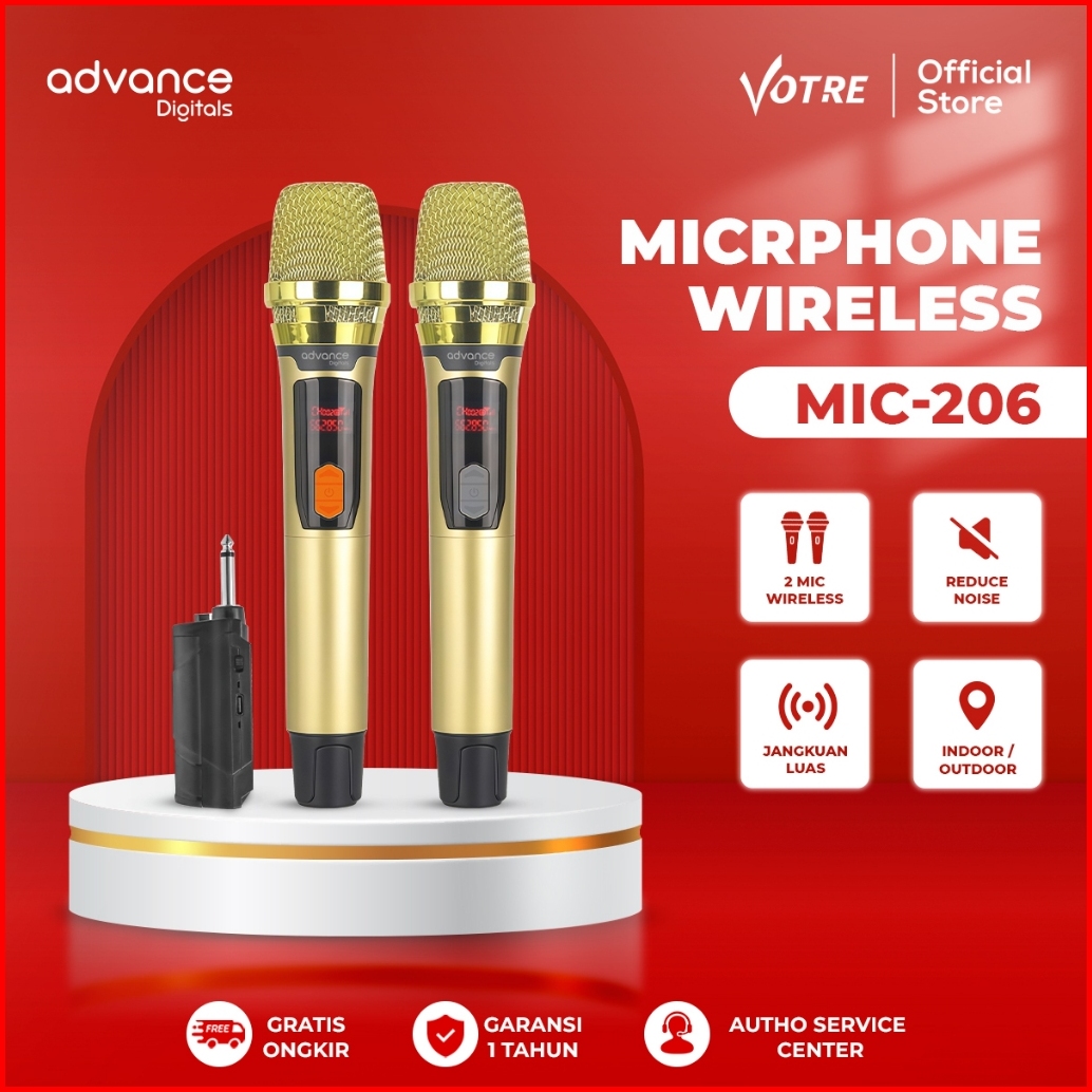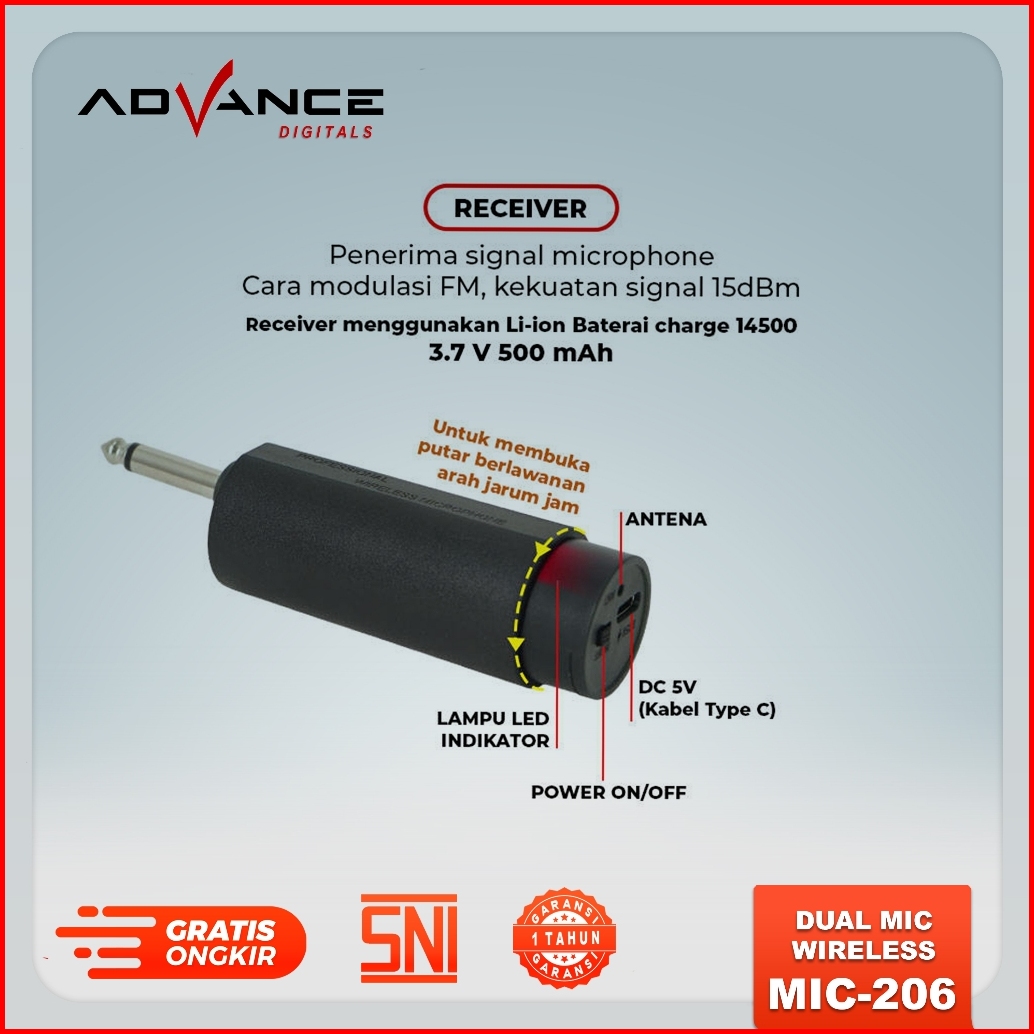Advance Mic-206 Double Microphone Wireless Uhf Recharger Bisa Untuk Souncard Speaker Garansi 1 Tahun