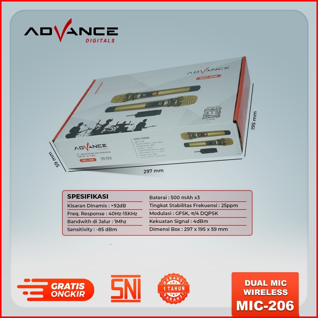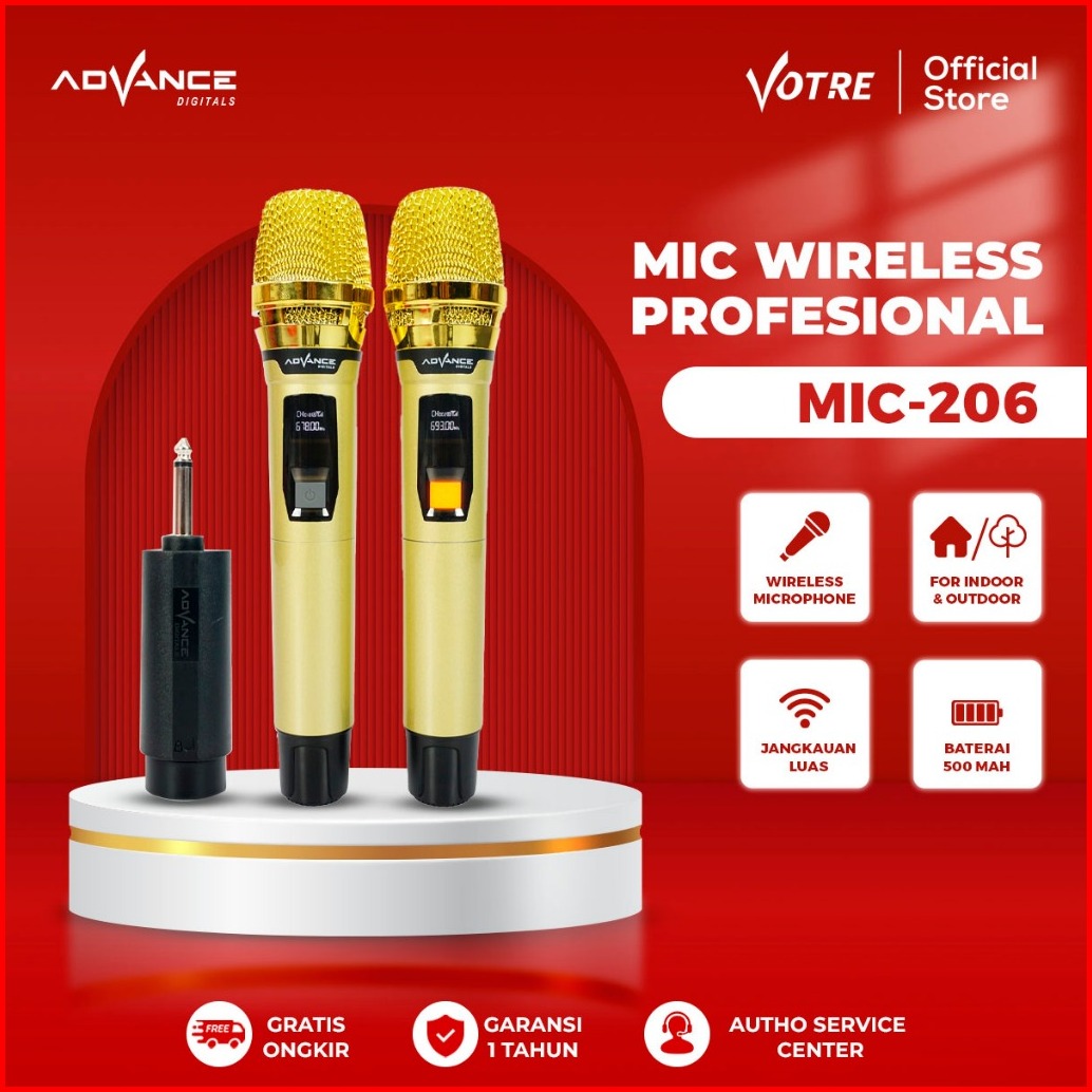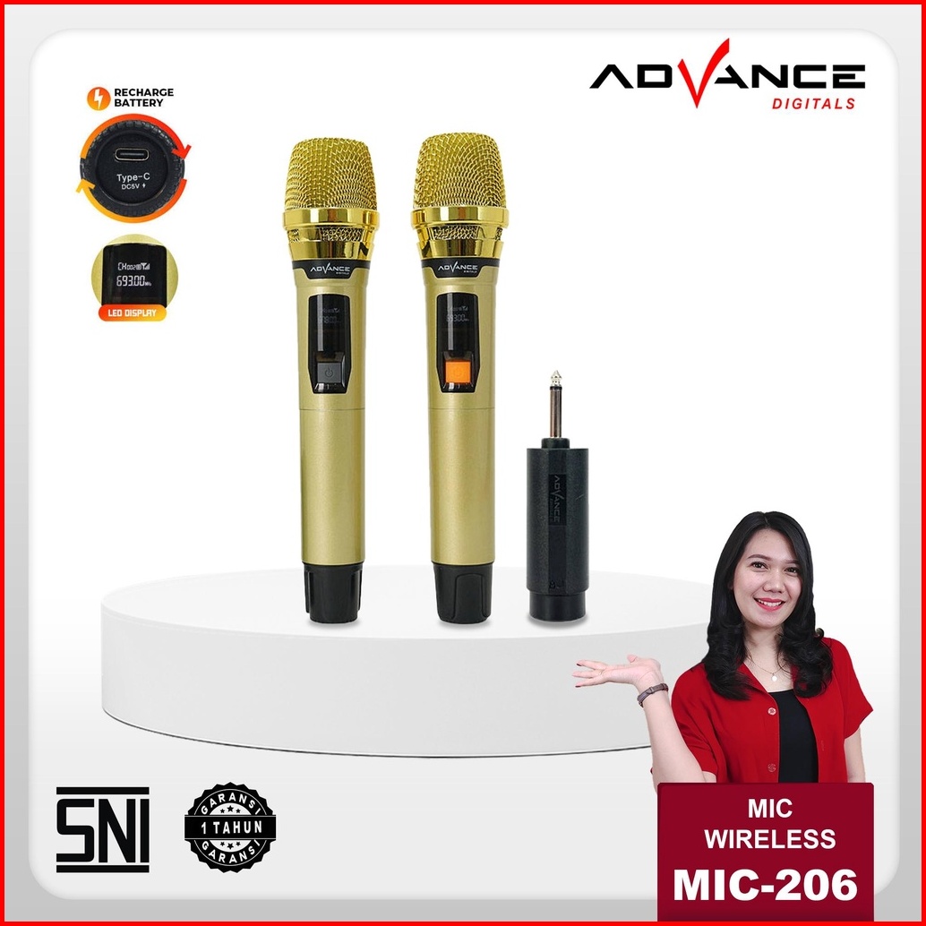 Advance Mic-206 Double Microphone Wireless Uhf Recharger Bisa Digunakan Untuk Souncard Speaker Garansi Resmi 1 Tahun