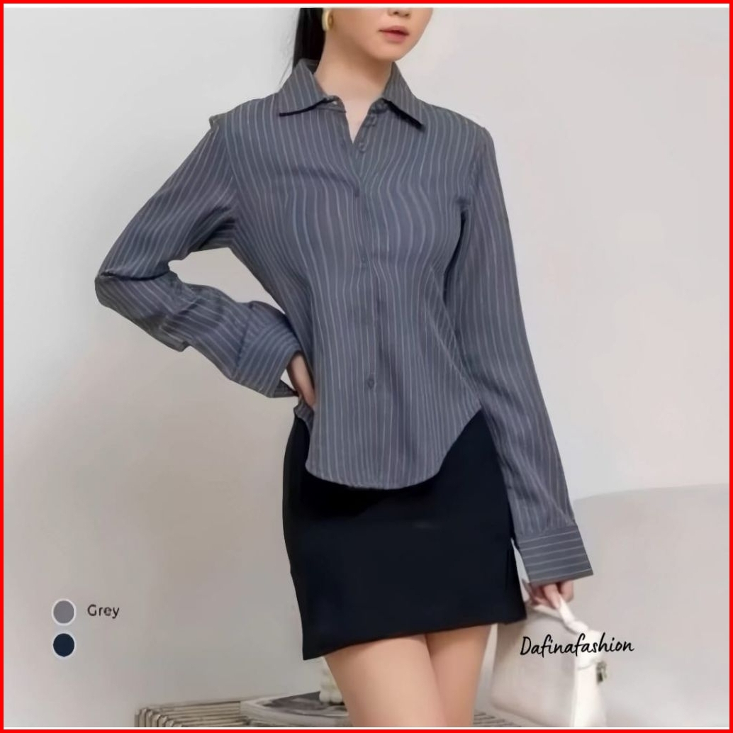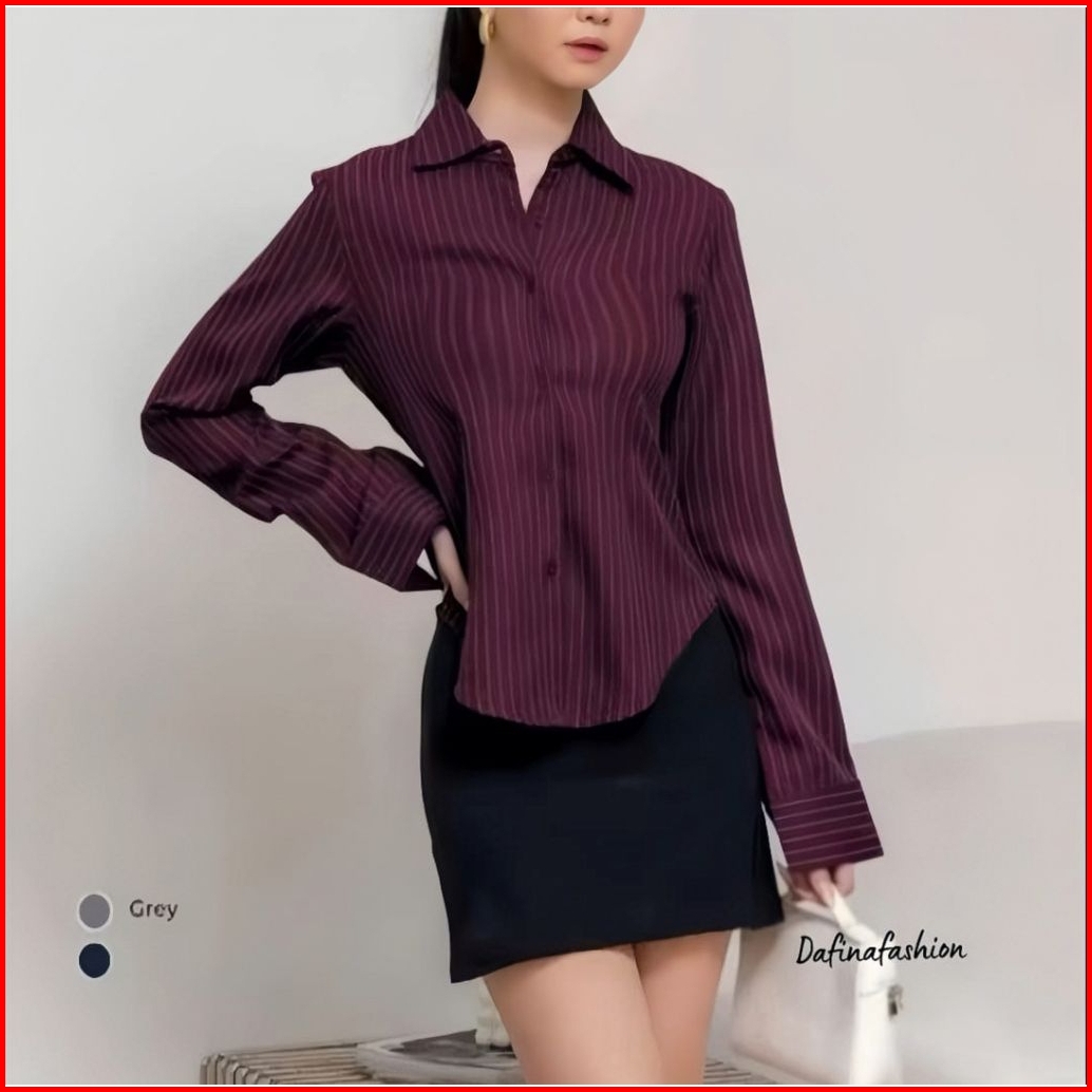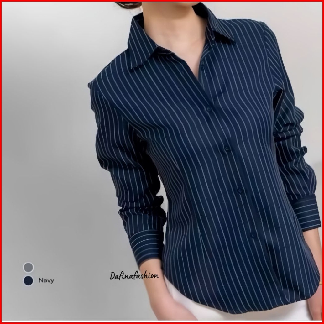 Kemeja Atasan Wanita Motif Salur Garis Stripe Slim Fit Body - Wispei Working Baby - Luna Stripe Terlaris