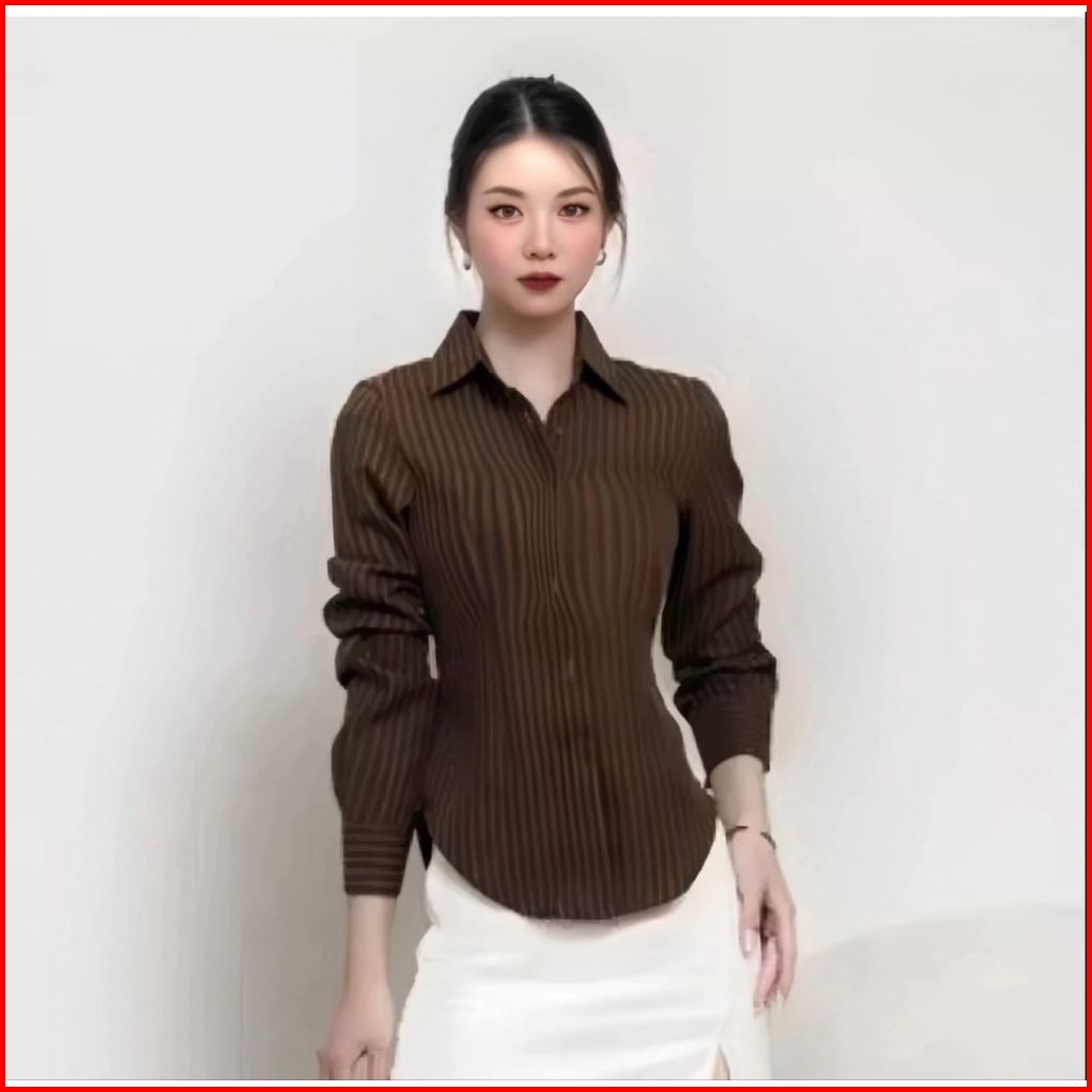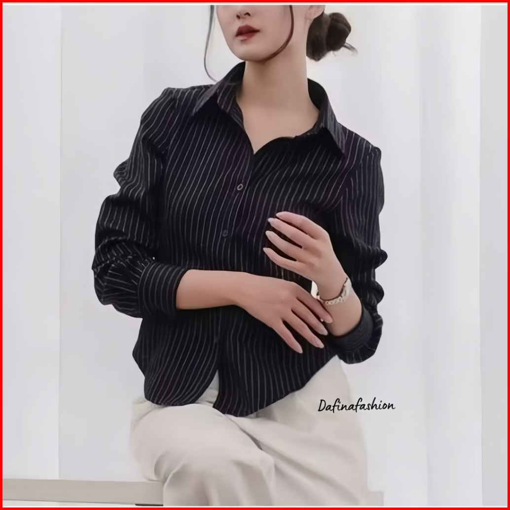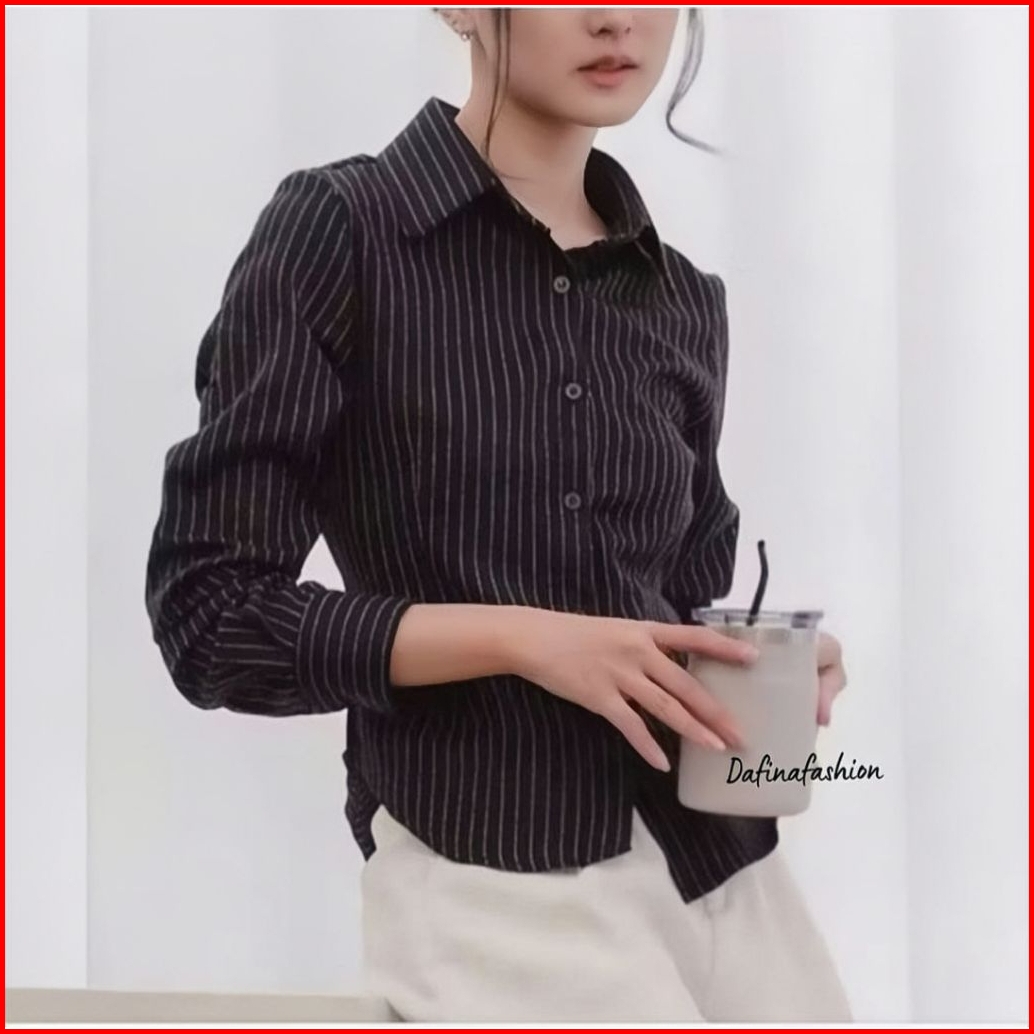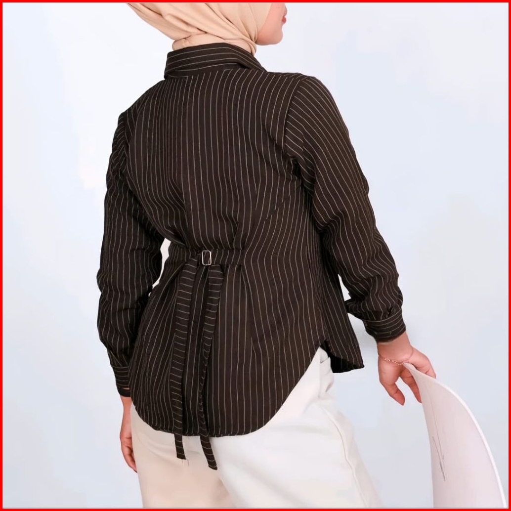 Kemeja Atasan Wanita Motif Salur Garis Stripe Slim Fit Body - Wispei Working Baby - Luna Stripe Terlaris