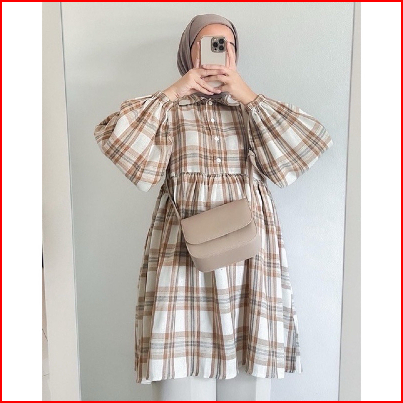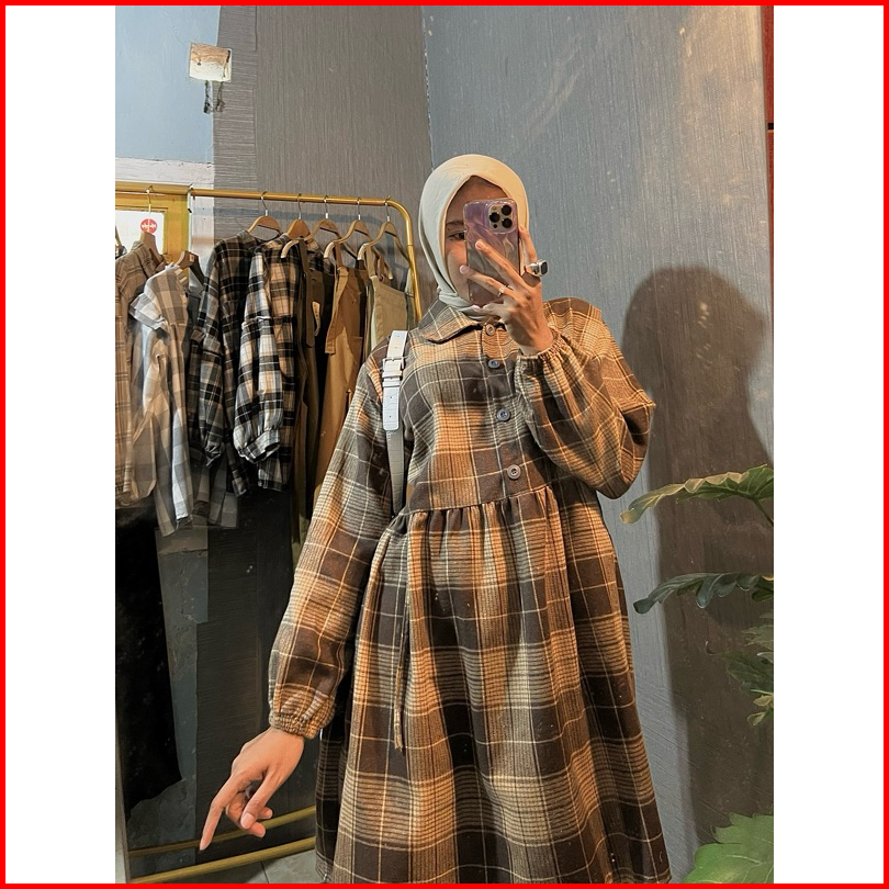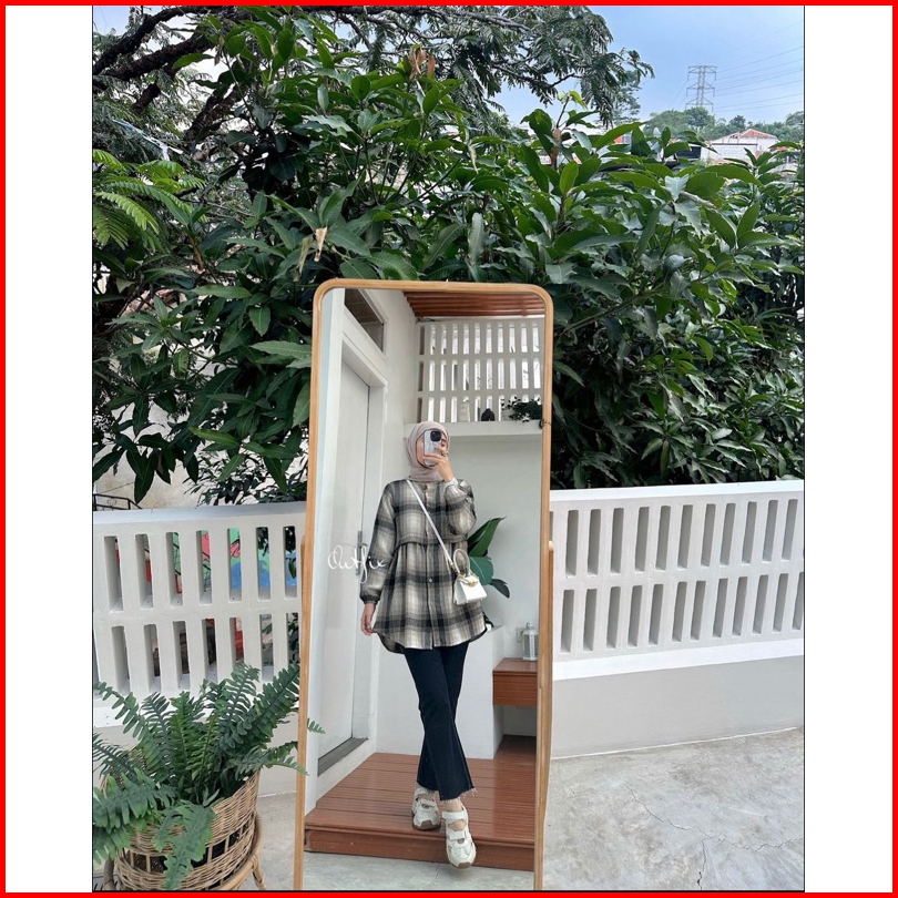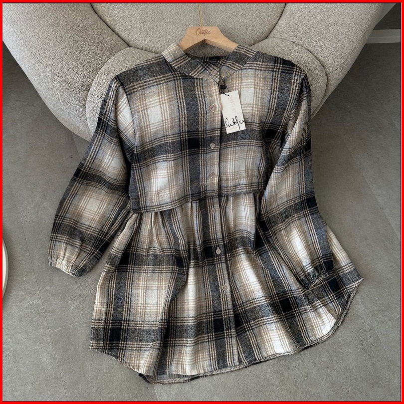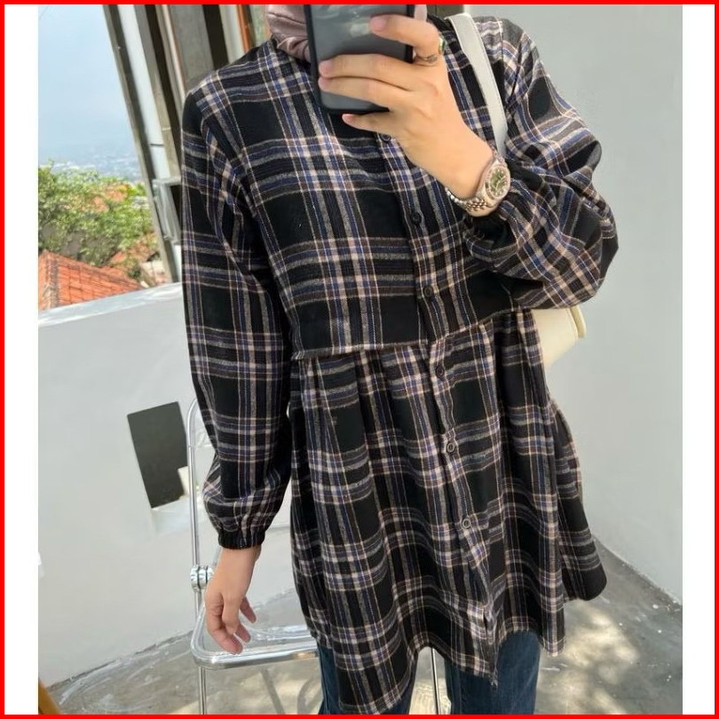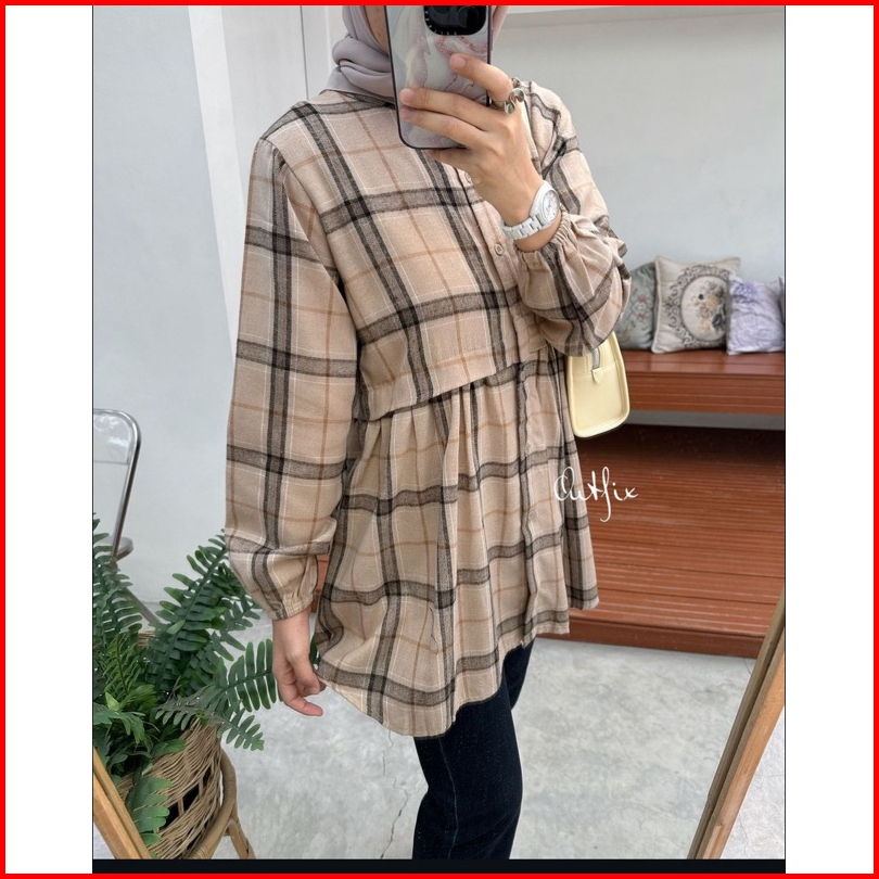 Rumyel Tunik Flanel Kemeja Ruffle Flanel Wanita Kekinian Tunik Flanel Premium