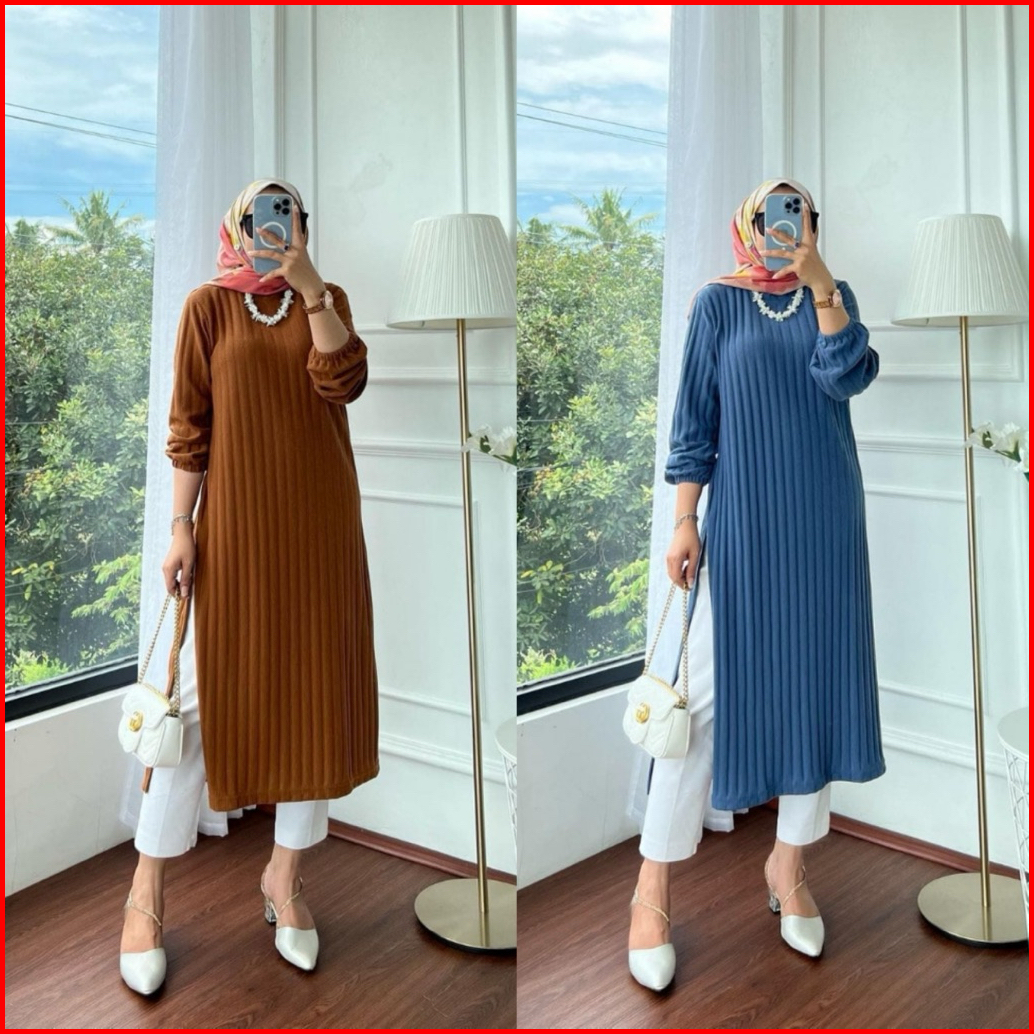 Kimia Long Tunik Hornet Knit Premium Original By Misha Label