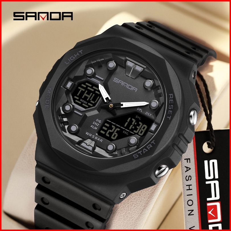 Sanda 6200 Jam Tangan Pria Wanita Digital Analog Sport El Backlight Tali Rubber Anti Air