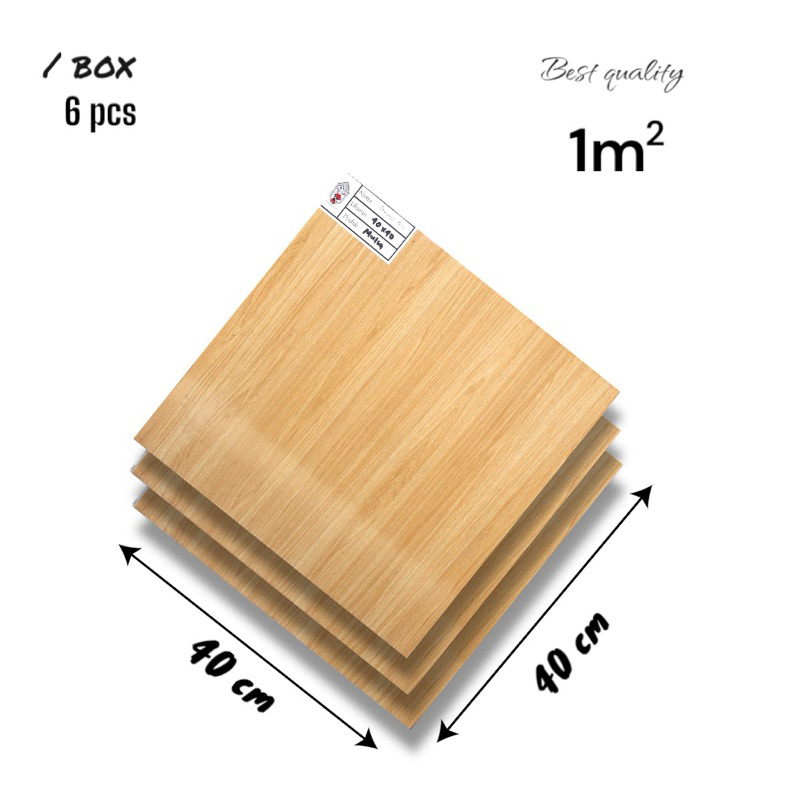 Keramik Glossy Lantai ukuran 40x40 Oakwood Brown & Beige Model Kayu Glosy Kilap/Licin