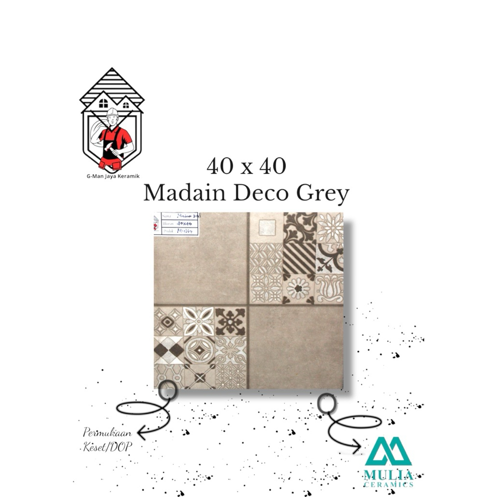 Keramik Lantai 40x40 Madain Grey KW 2 Keramik Kamar Mandi/Teras/Carpot/Matt Dasar Hitam Ceramic Mulia Grade B Isi 6pcs