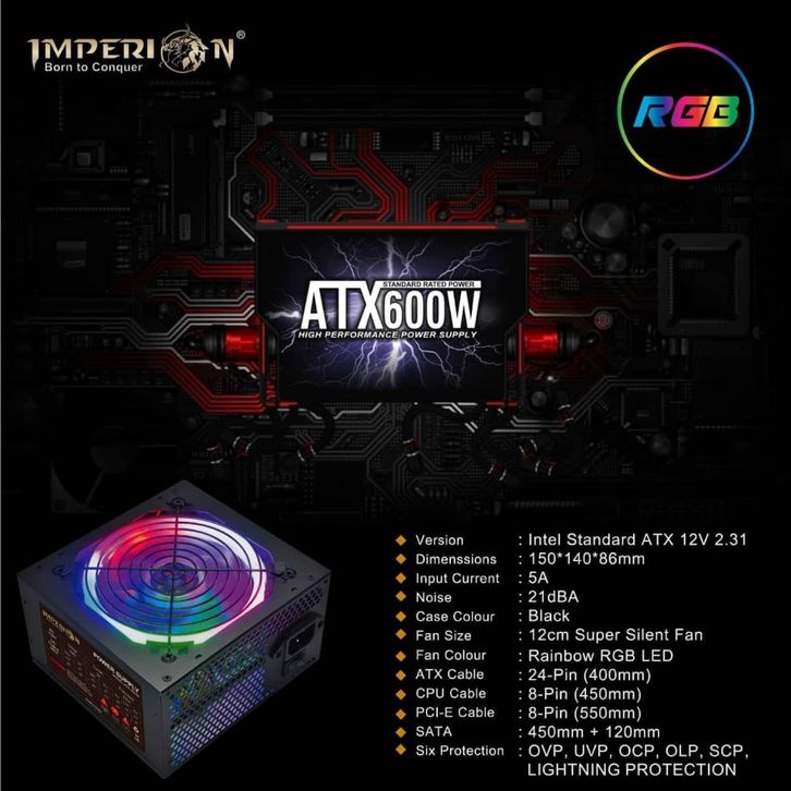 psu Power Supply PSU Imperion P600 600W LED VGA 8 Pin RGB