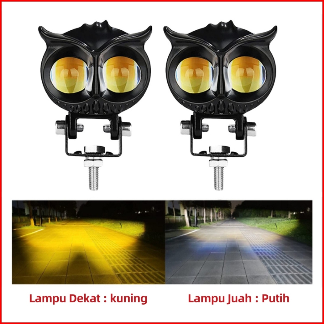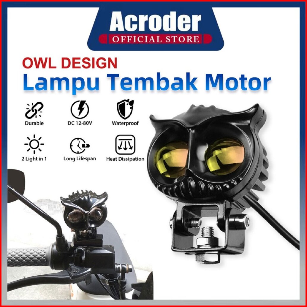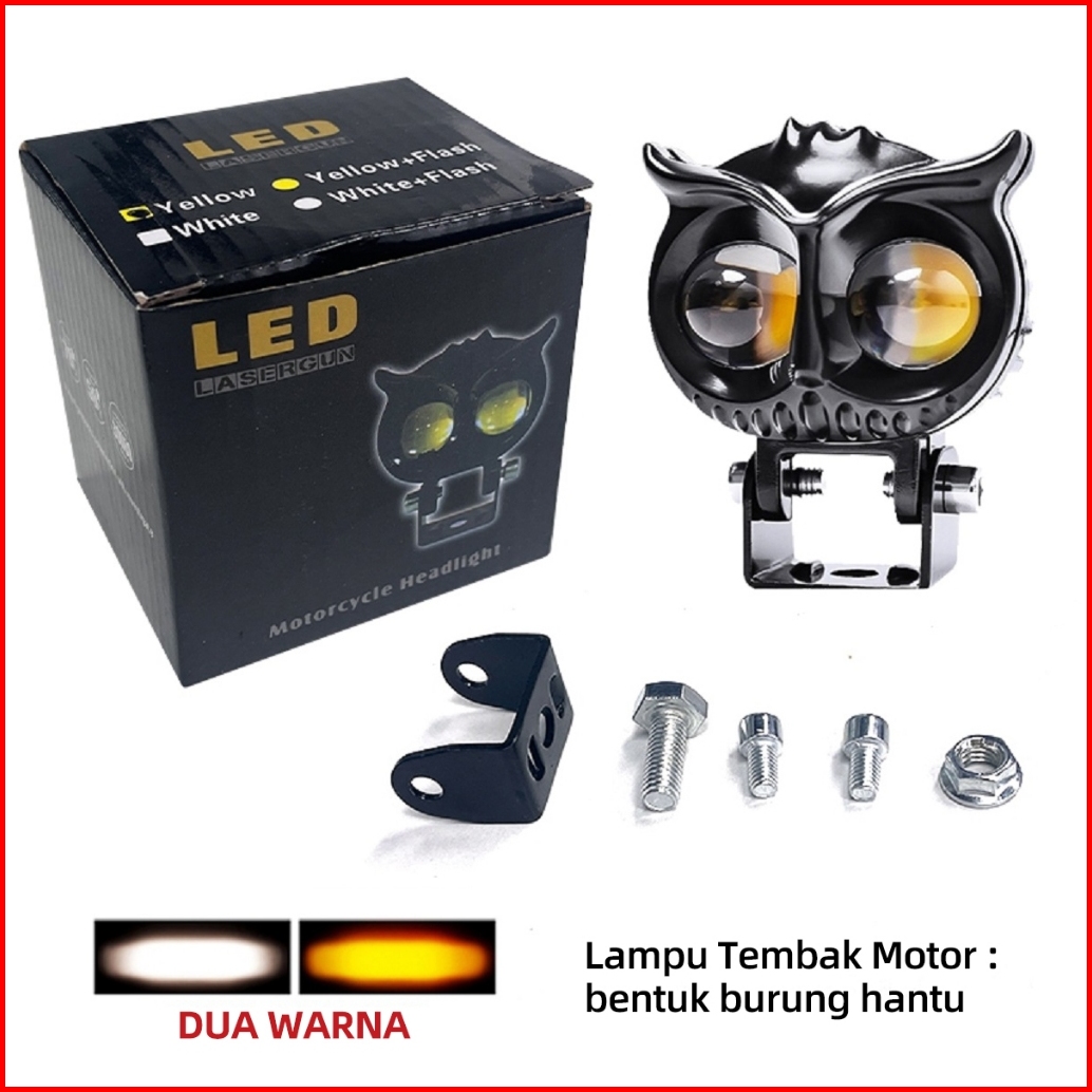Acroder Lampu Tembak Laser 2 Mata Putih Kuning Hi Lo Super Terang Full Aluminium Owl Design