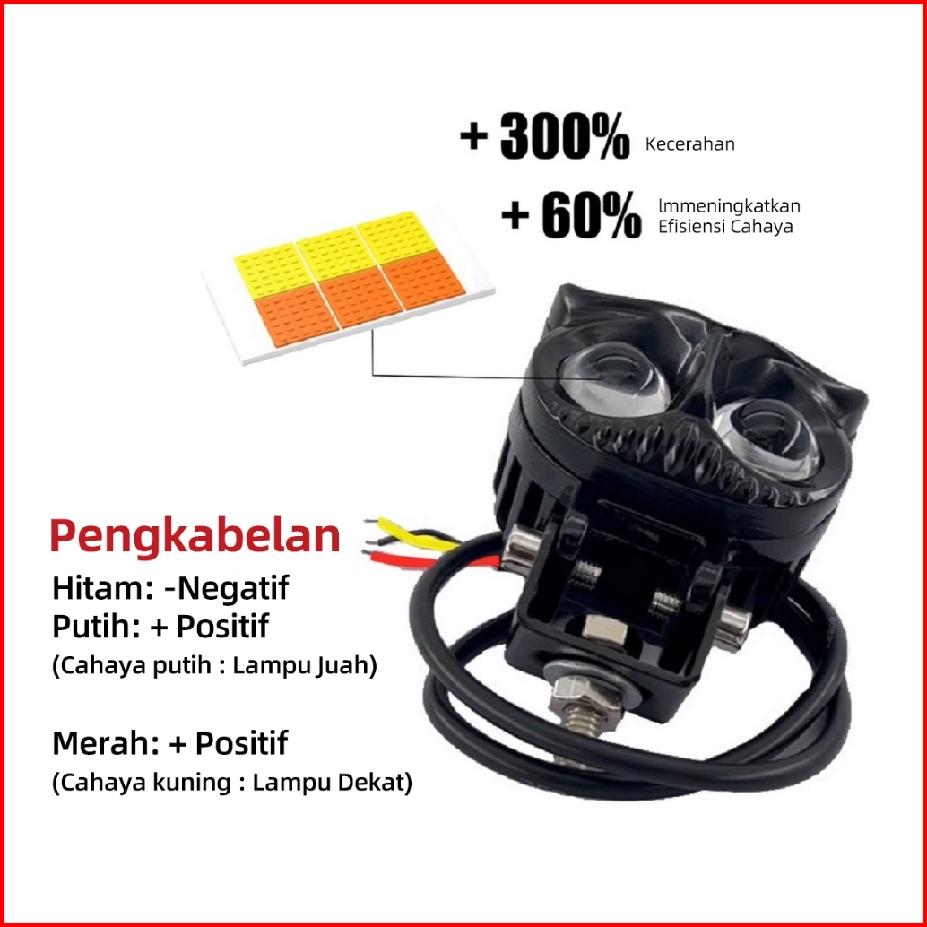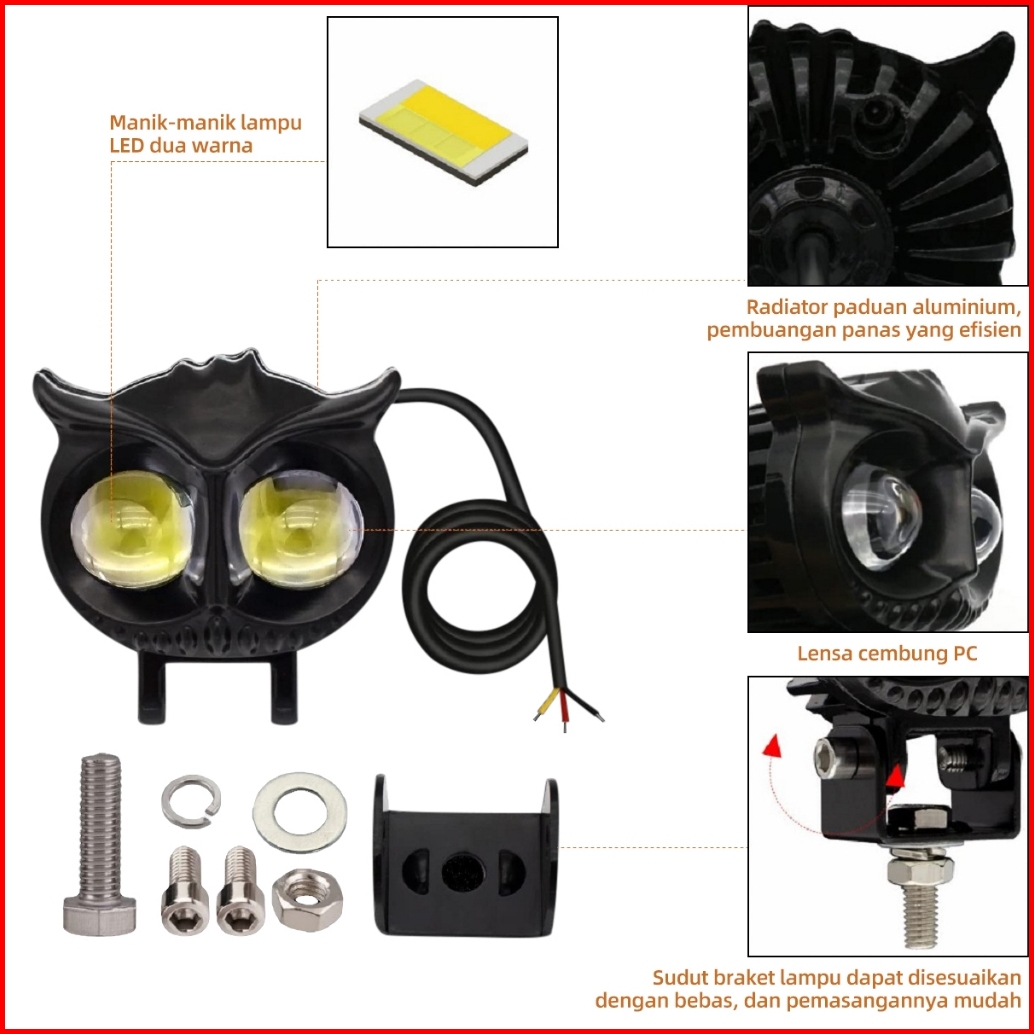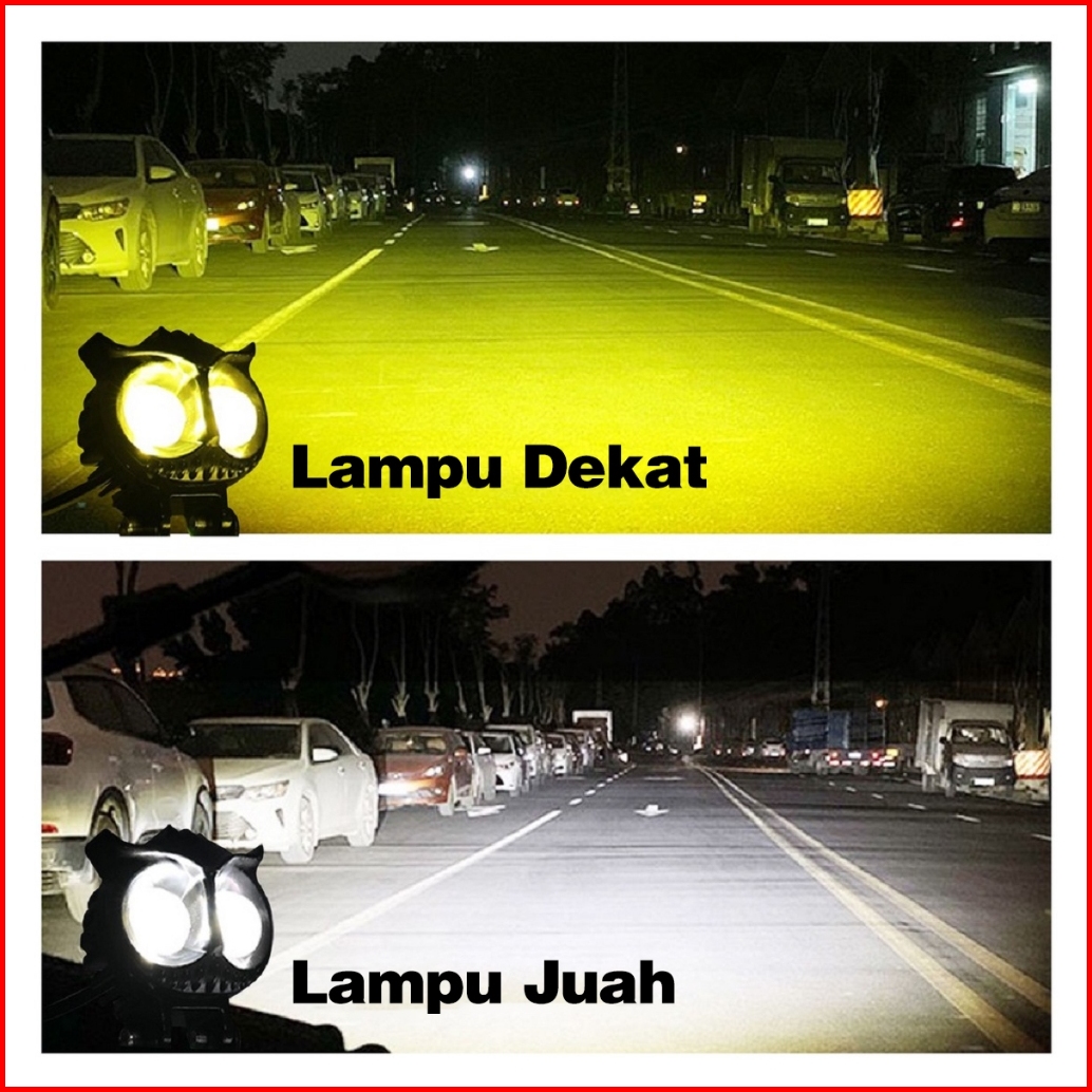Acroder Lampu Tembak Laser 2 Mata Putih Kuning Hi Lo Super Terang Full Aluminium Owl Design
