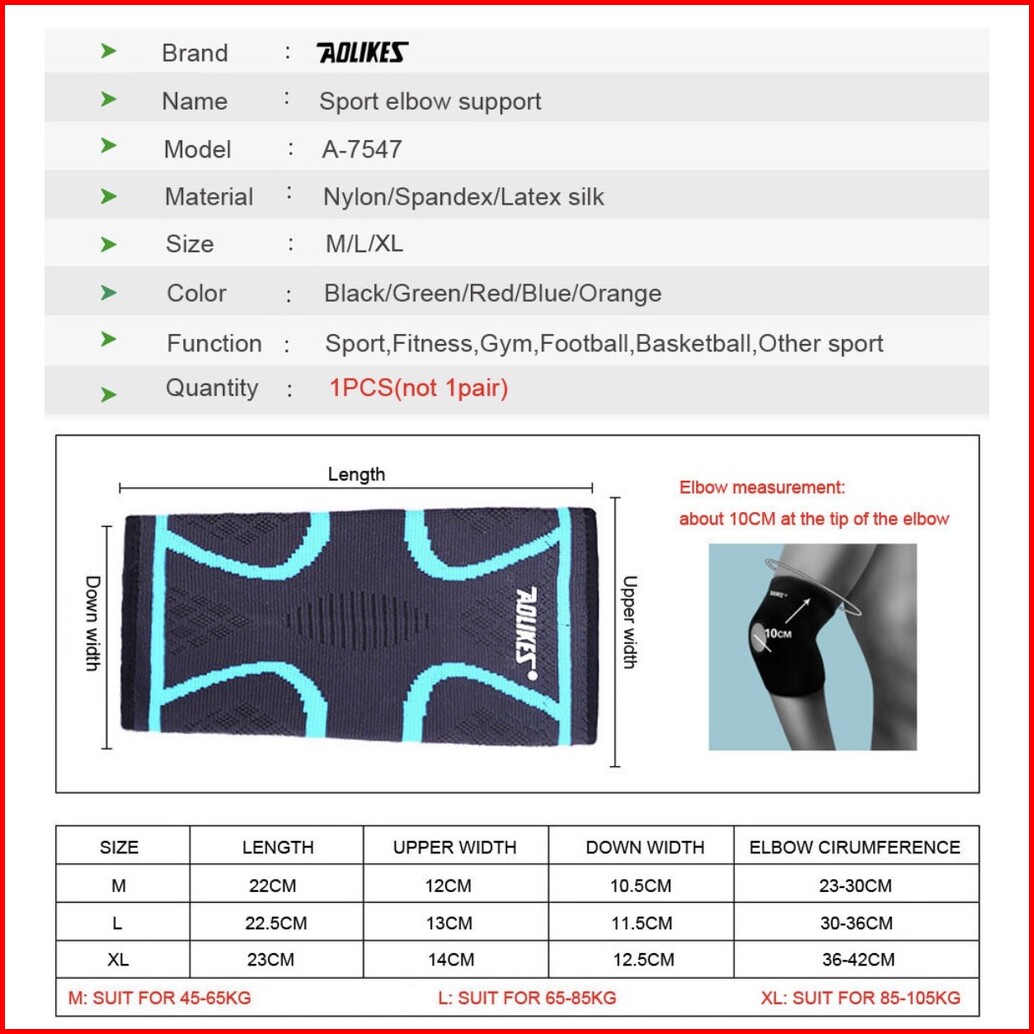7547 Aolikes Elbow Sleeves Sleeve Wrap Pad Deker Pelindung Siku Tangan - L Hitam