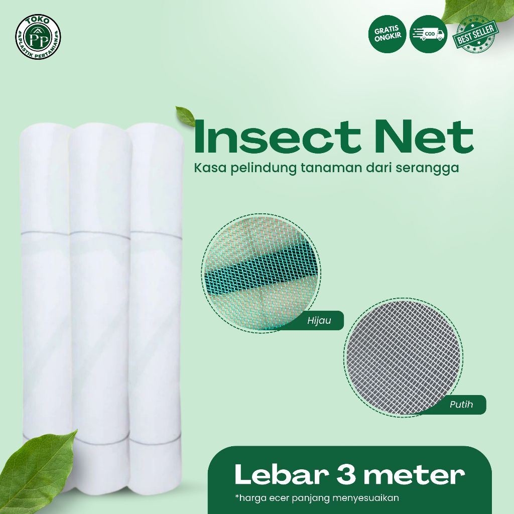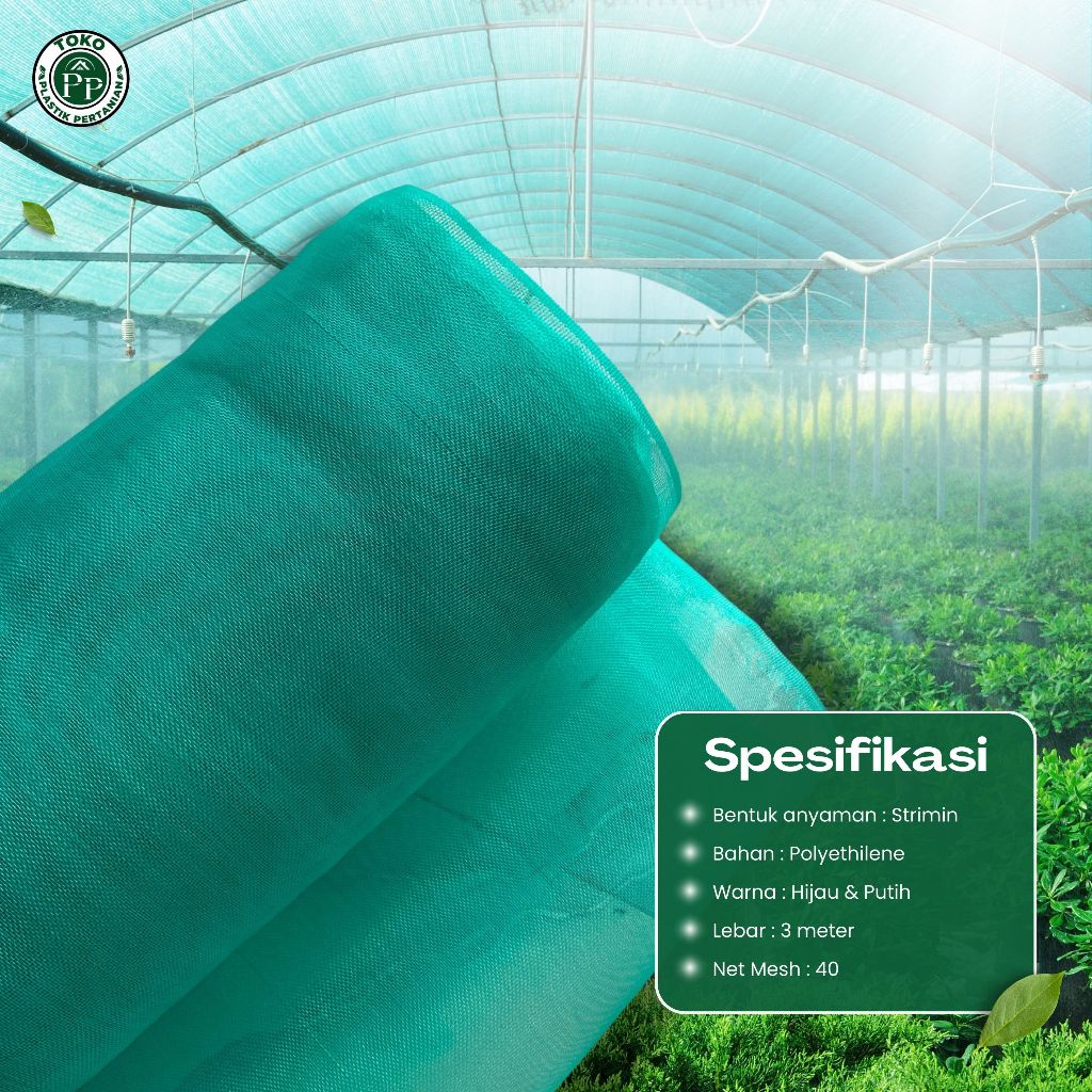 [Star] INSECT NET / KASA / ANTI SERANGGA GREENHOUSE Lebar 3 meter TANPA SAMBUNGAN - Hijau & Putih