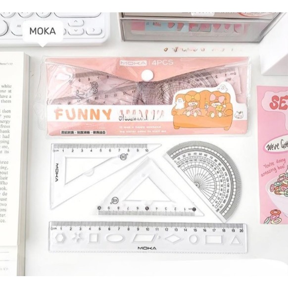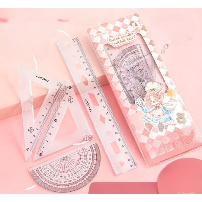 KP171 - PENGGARIS SEKOLAH PENGGARIS LUCU PENGGARIS SERBA GUNA PENGGARIS MATEMATIKA 1 SET 4 PCS PREMIUM RULER DAPAT DITEK