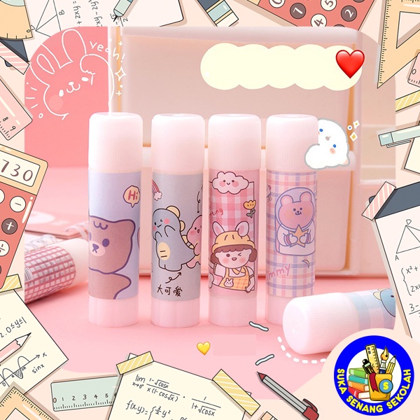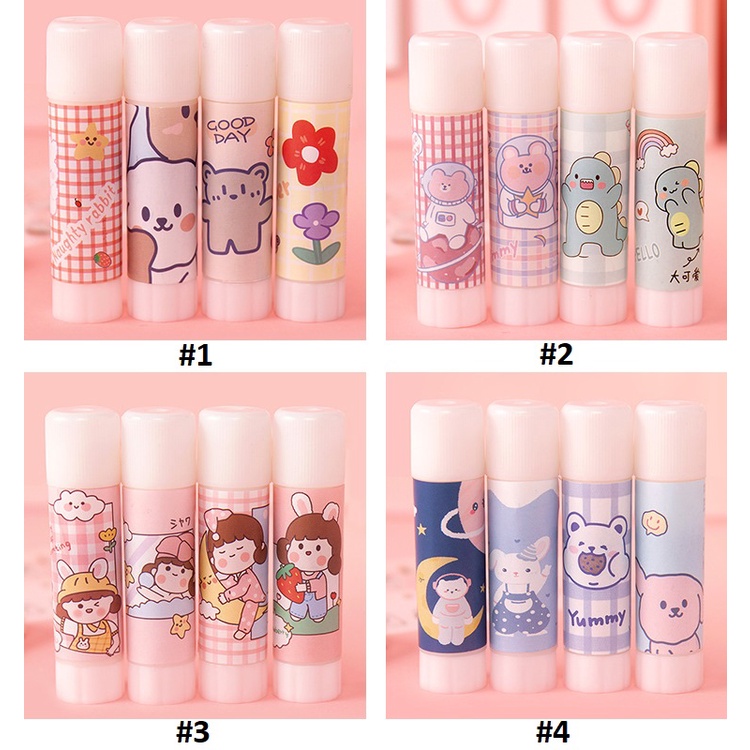 4 PCS RANDOM Glue Stick 15gr / Lem Batang Motif Kartun AT0030