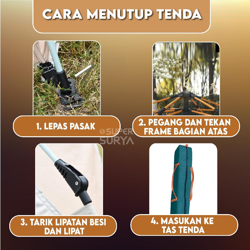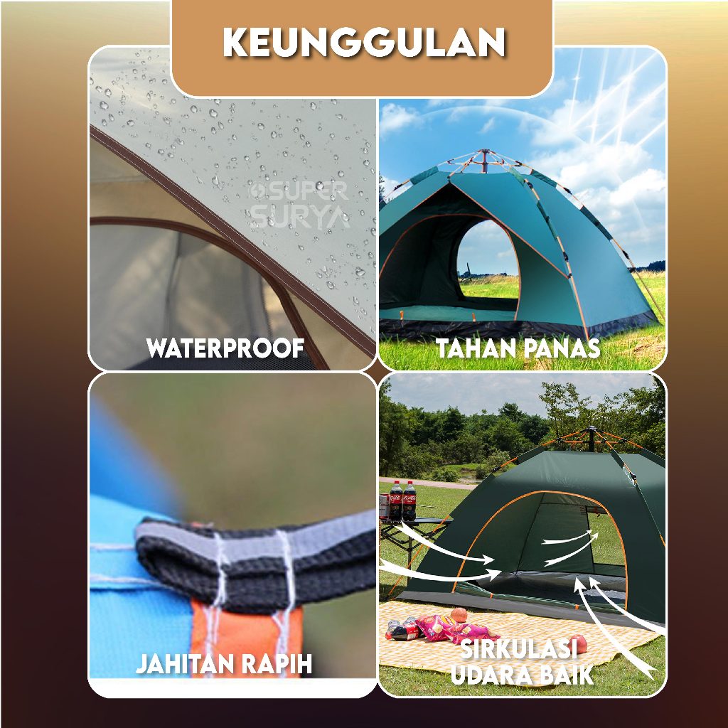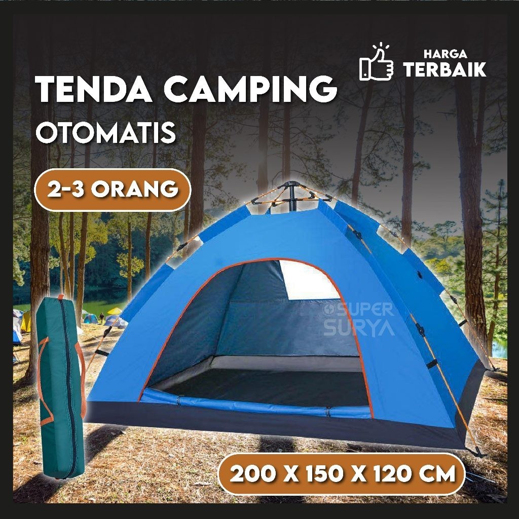 Tenda Otomatis Camping Parasut Alat Outdoor Waterproof Kapasitas 3 Orang