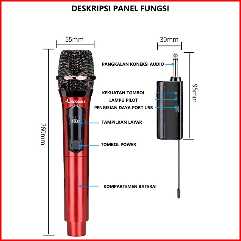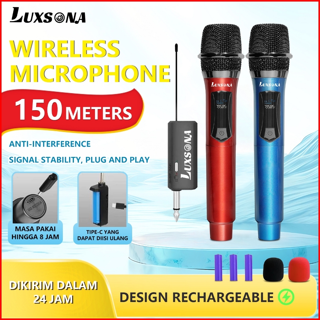 Luxsona Mikrofon Nirkabel Mikrofon Karaoke Ganda Mic Karaoke Wireless Asli Profesional Murah Mikropon Karaoke Genggam Is