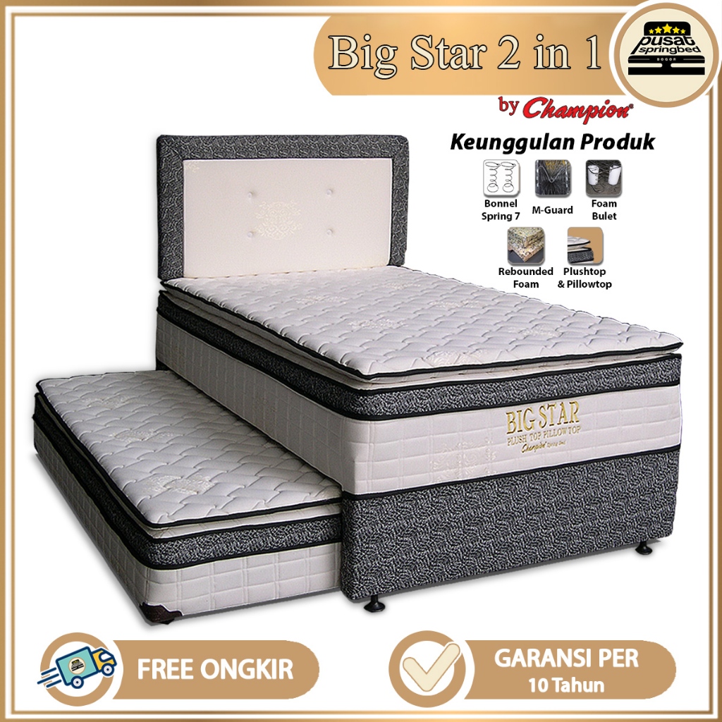 SPRINGBED KASUR SORONG 2 IN 1 PLUSHTOP + PILLOWTOP - CHAMPION SPRINGBED BIG STAR 2 IN 1 SAND. SL