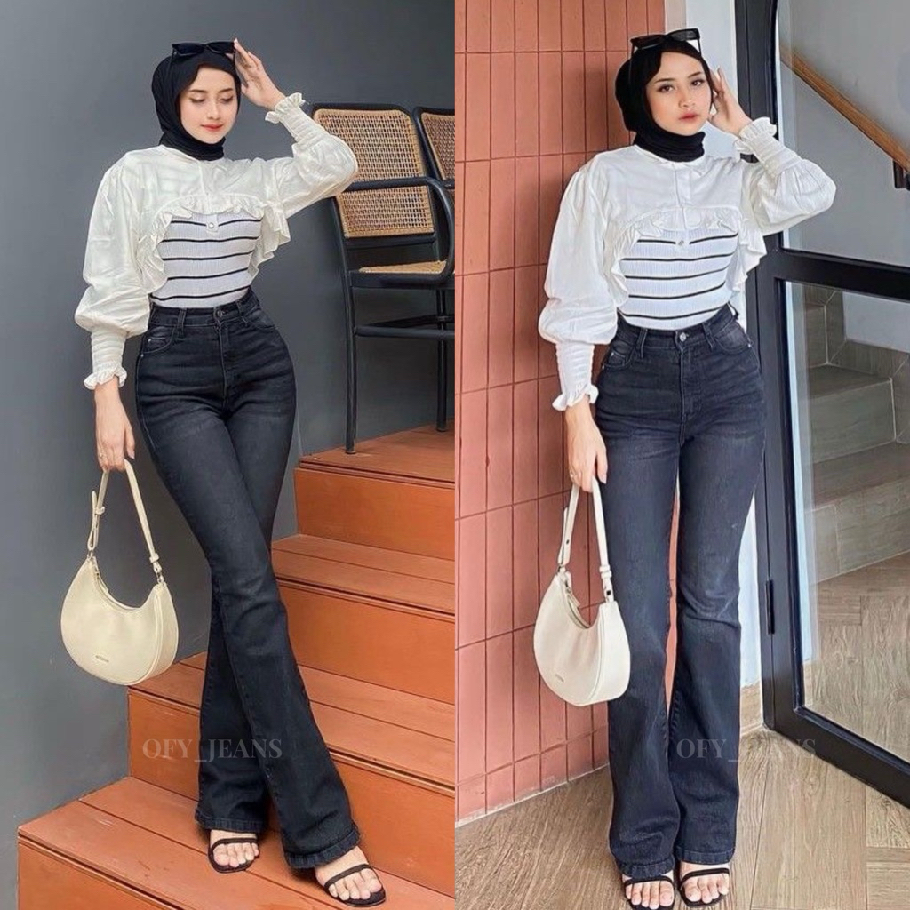 Highwaist Cutbray Jeans Retro 114 - Celana Jeans Cutbray Premium