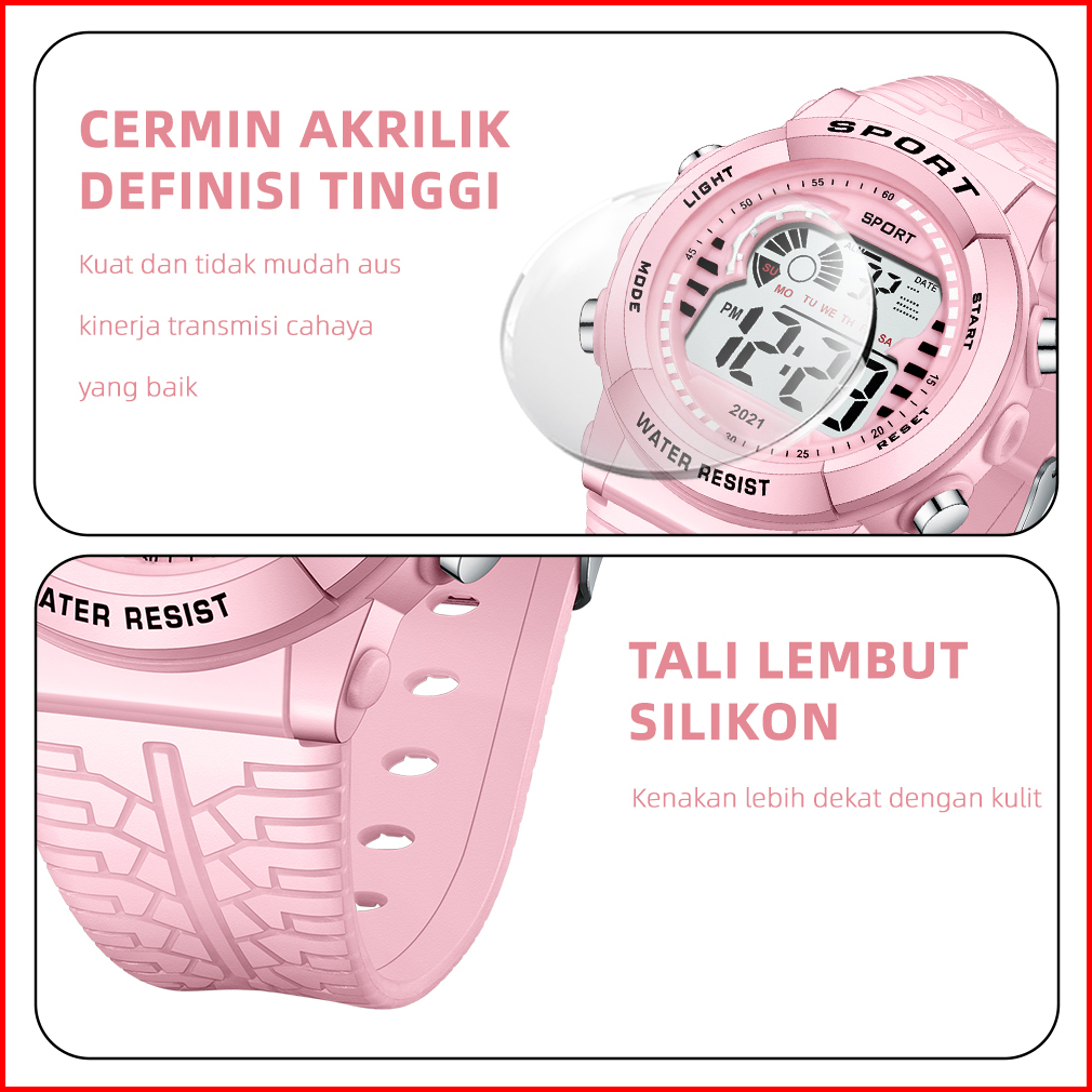 Sunlifex Jam Tangan Wanita Digital Tali Silikon Jam Murid Olahraga Mode Jam Tangan Wantia