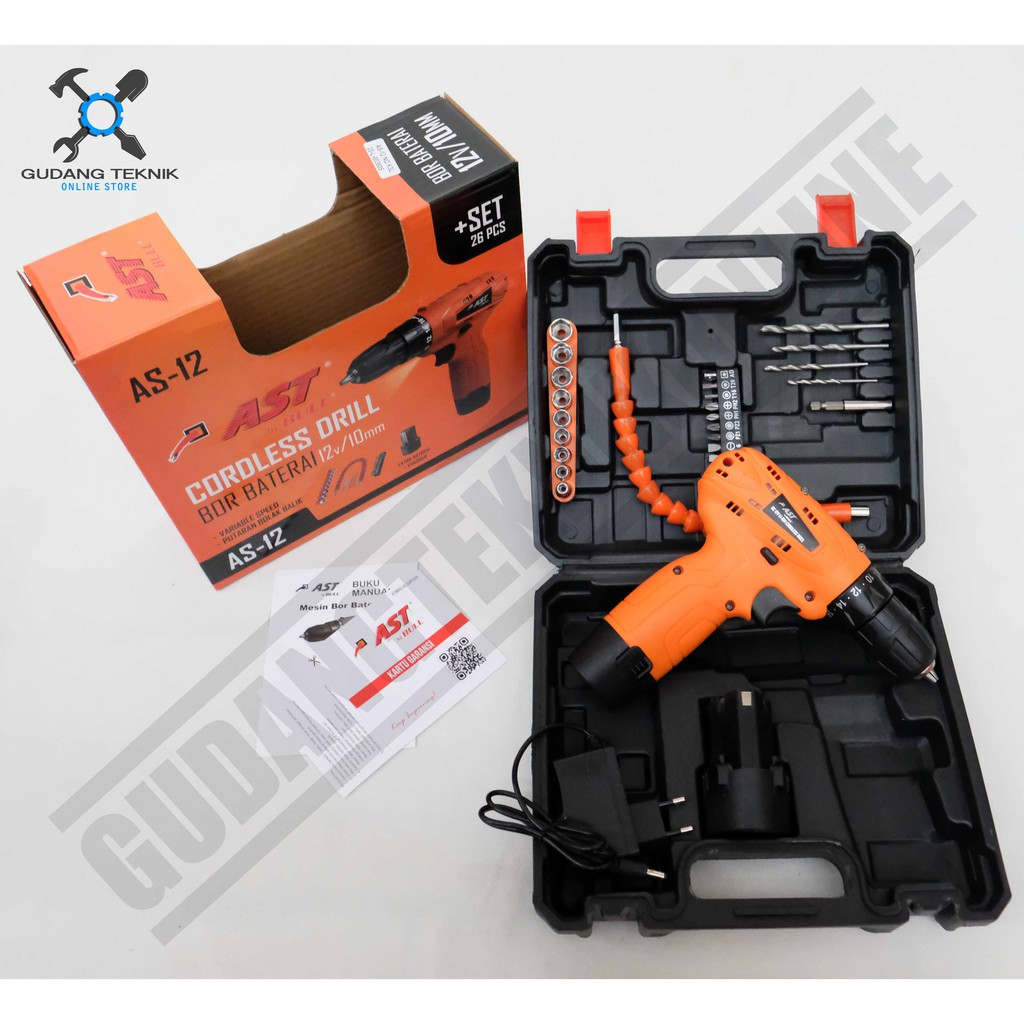 (AST AS12) Mesin Bor Tangan CORDLESS 10mm AS12 AST / Mesin Bor BATERAI Keyless AS 12 12V - Cordless Drill AST AS-12