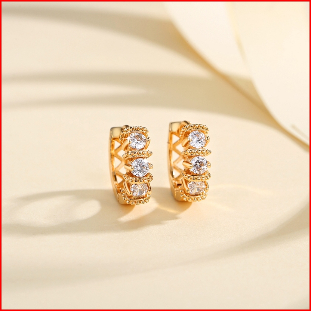 Lanme Jewelry Anting Kristal Berlapis Untuk Wanita Dewasa Baja Tahan Karat Tahan Pudar Aksesoris Korea Modis Lm670