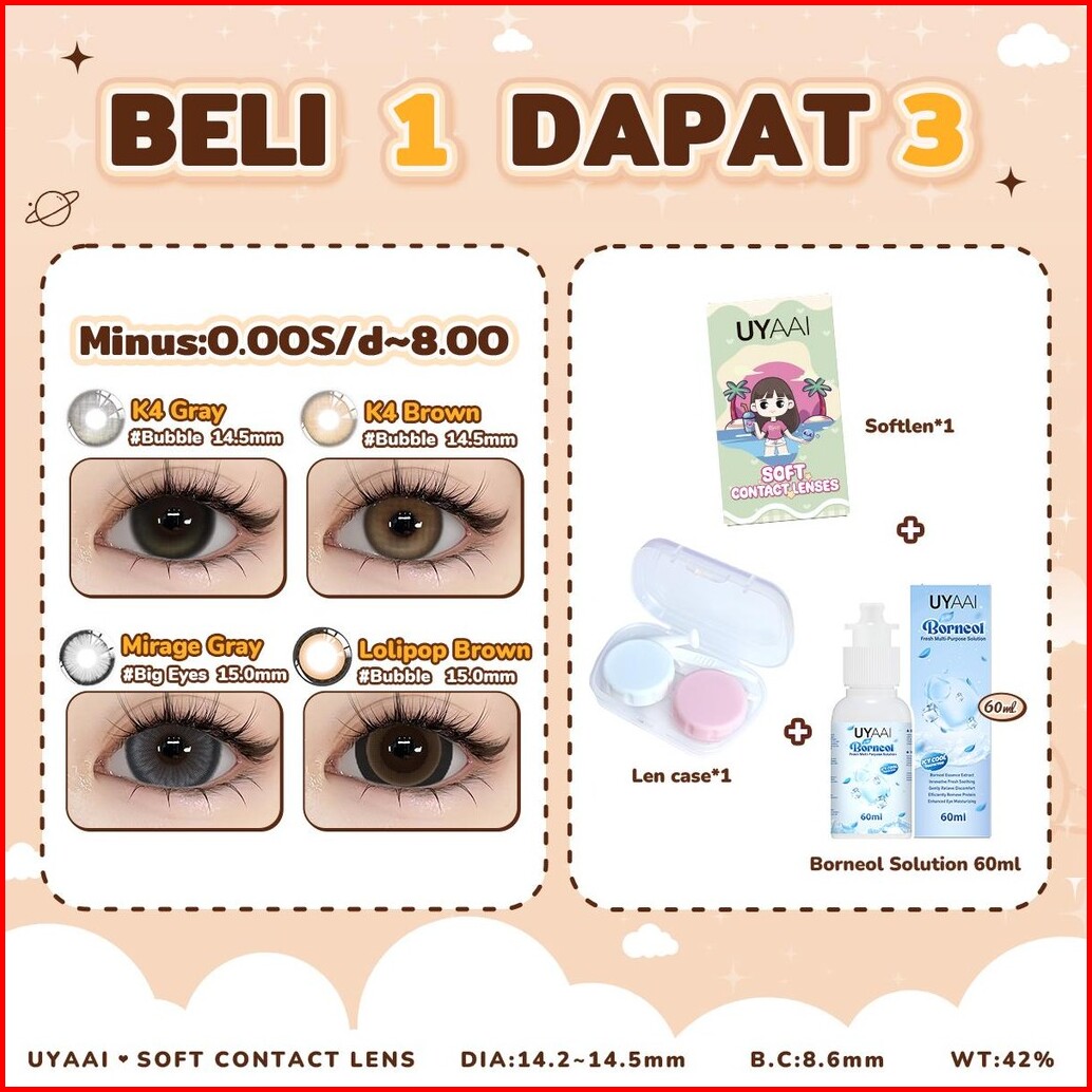 Exclusive Ultrabeli 1 Dapat 3 Minus 0.00 S D 6.00 Uyaai Lensa Kontak 14.5mm Softle Natural Look Berwarna Softlens Set 1