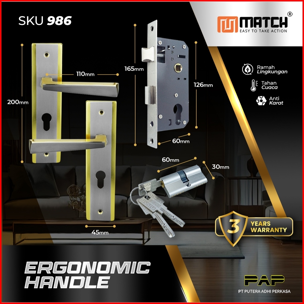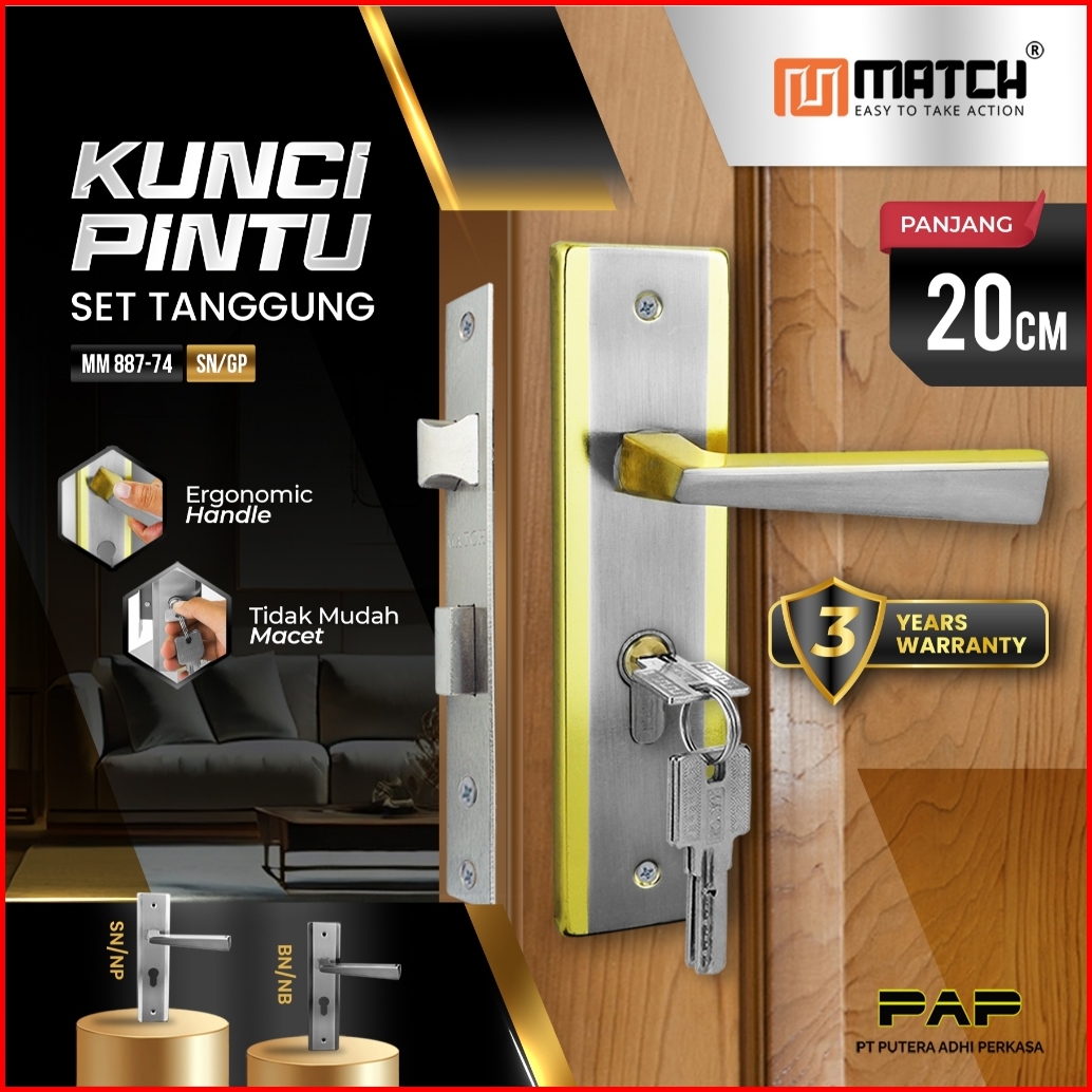 Match Hendel Pintu Tanggung 20 Cm Minimalis Kunci Rumah Set Handel Handle Gagang Kamar Mm 887-74