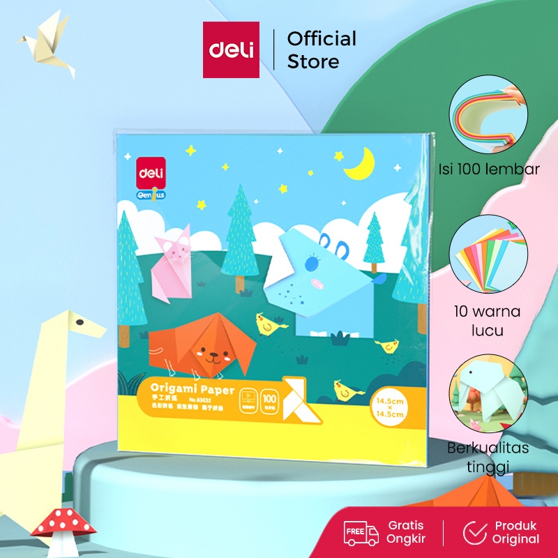Deli Origami Paper / Kertas Lipat Origami 100 pcs 10 Warna Berbagai Ukuran 8363X
