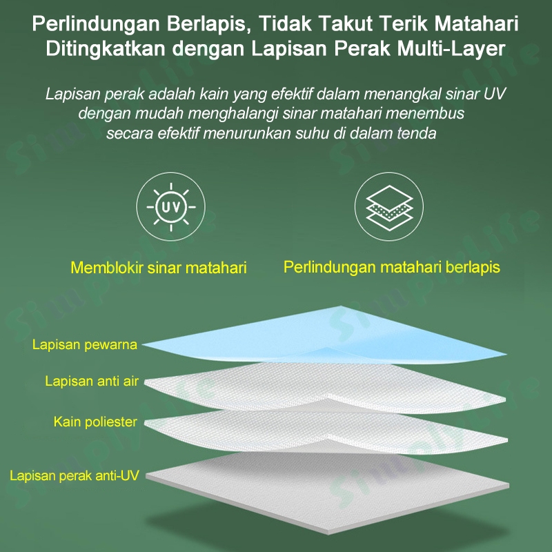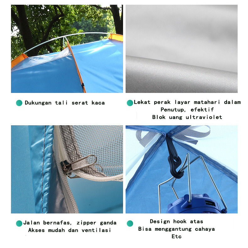 Tenda Camping Waterproof Otomatis Cepat - Ideal untuk 1-4 Orang (Tanpa Jendela Atap atau Dengan Jendela Atap), Sempurna