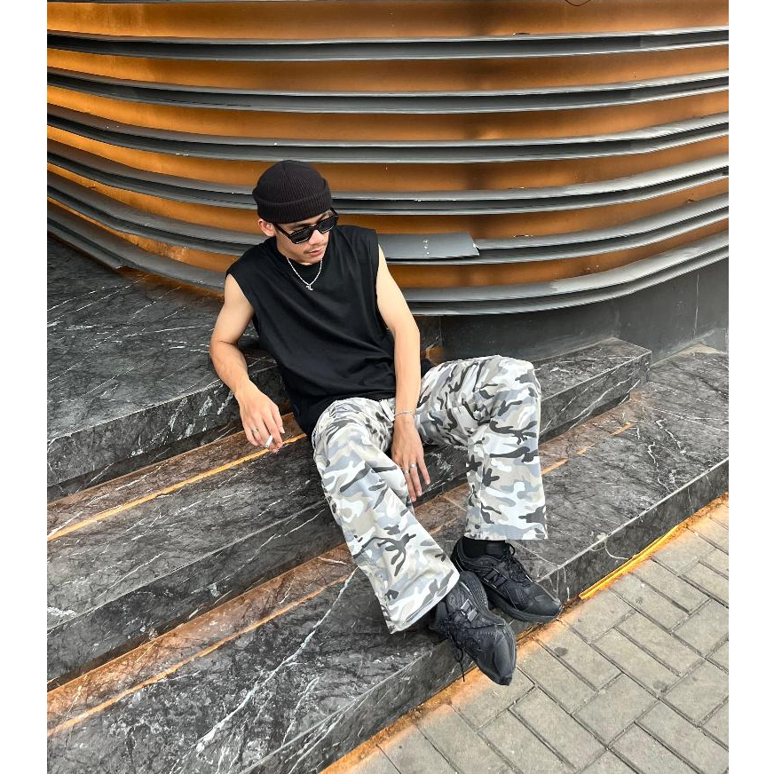 Celana Loreng Panjang Pria Cargo Camo Baggy Gombrong Skena / Celana Cargo Pants Pria