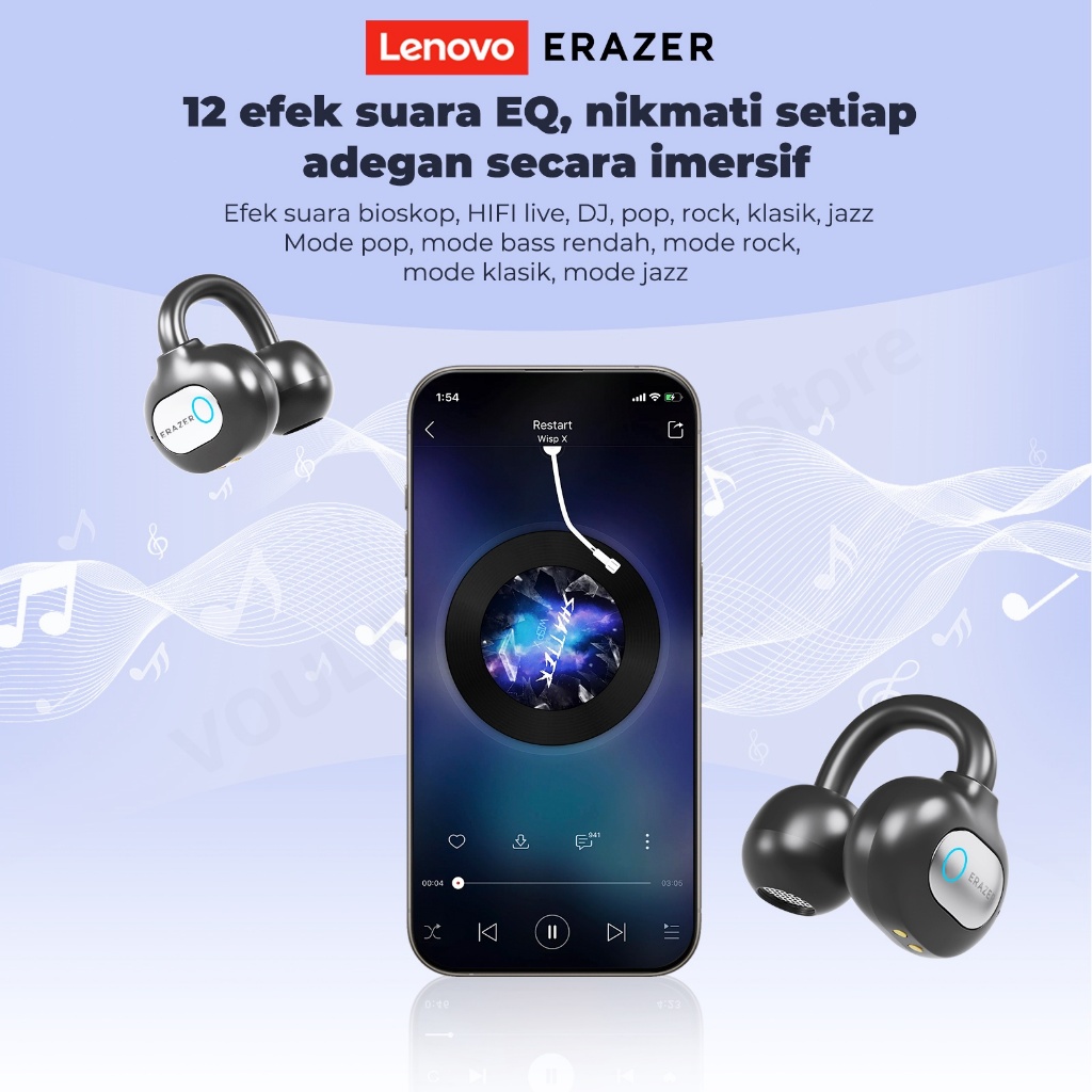 VOULAO X Lenovo ERAZER XF50 Bone Conduction Bluetooth V6.0 Wireless Sports Headphone Dengan Stereo Bernama-Perairan