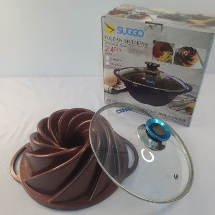 TULBAN MULTIPAN 24 CM Cetakan Bolu Twister Marmer + Tutup Kaca