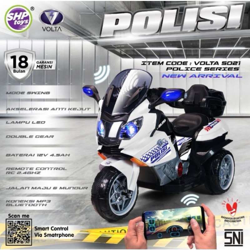 Motor Aki Anak Besar model Polisi Volta 5021 Ada Remote & free helm cas an