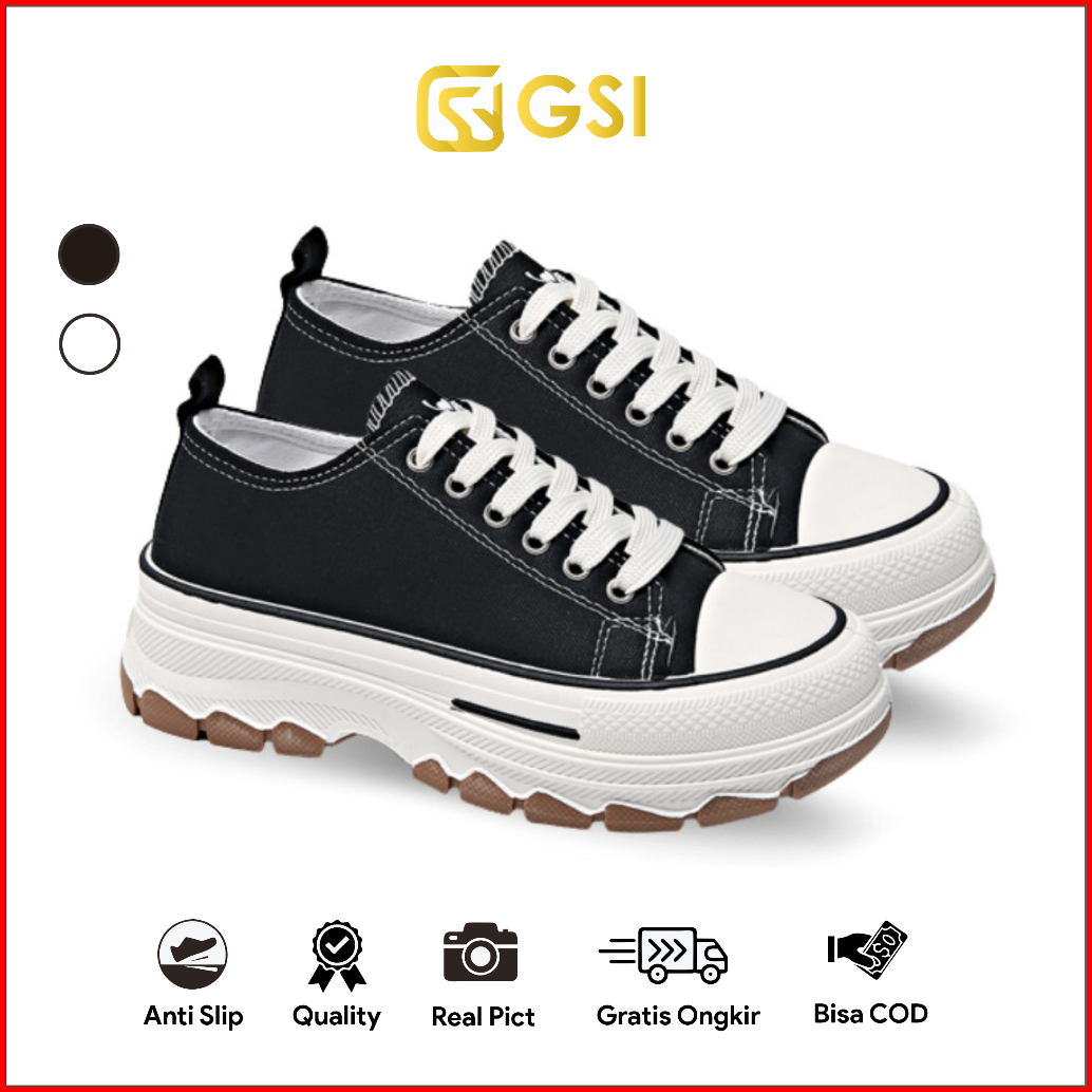 Gsi Jimin Low 1216 Sepatu Wanita Sneakers Sekolah Kanvas Tebal Kekinian Size 36-41