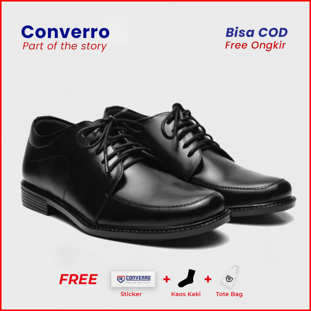 Free Box Kaos Kaki Converro - Pantofel Pria Tali Sepatu Kerja Formal Sepatu Pria Sepatu Oxford Pria Sepatu Hitam 100 Ori