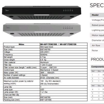 MIDEA MH60F17EM21SBID Cooker Hood 60cm Stainless Steel Penghisap Asap Dapur - Garansi