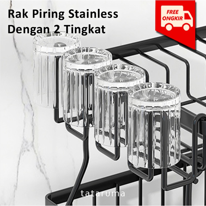 TATARUMA Nori - Rak Piring Dua Tingkat Tempat Pengeringan Cuci Mangkuk Gelas Pengerit Alat Makan Masak Dapur 2 Susun