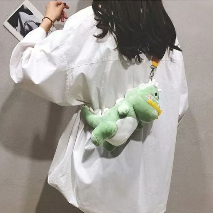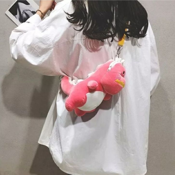 Tas Selempang Anak Lucu dem_sare - JDS006 DINO Tas Selempang Anak Boneka Lucu Tas bulu Boneka selempang Bahu Tas