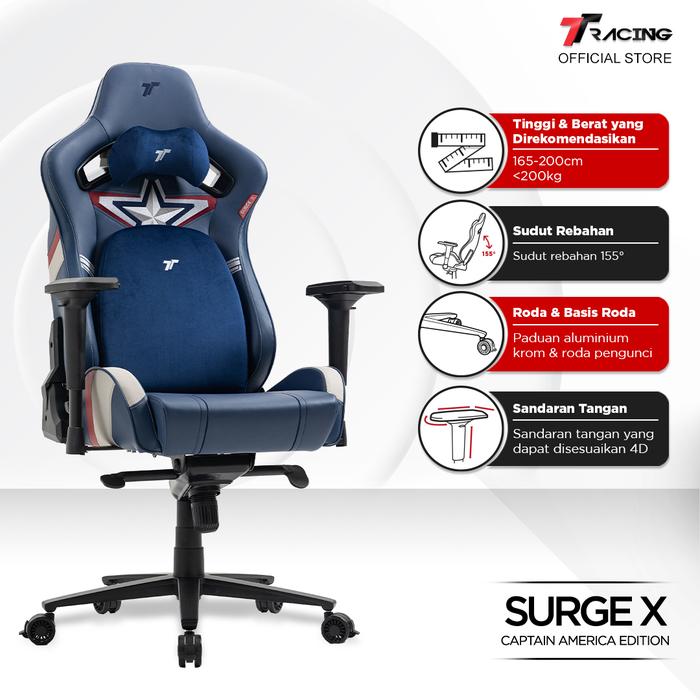 TTRacing Captain America | Surge X Gaming Chair | Kursi Gaming Koleksi Marvel [Garansi 2 Tahun]