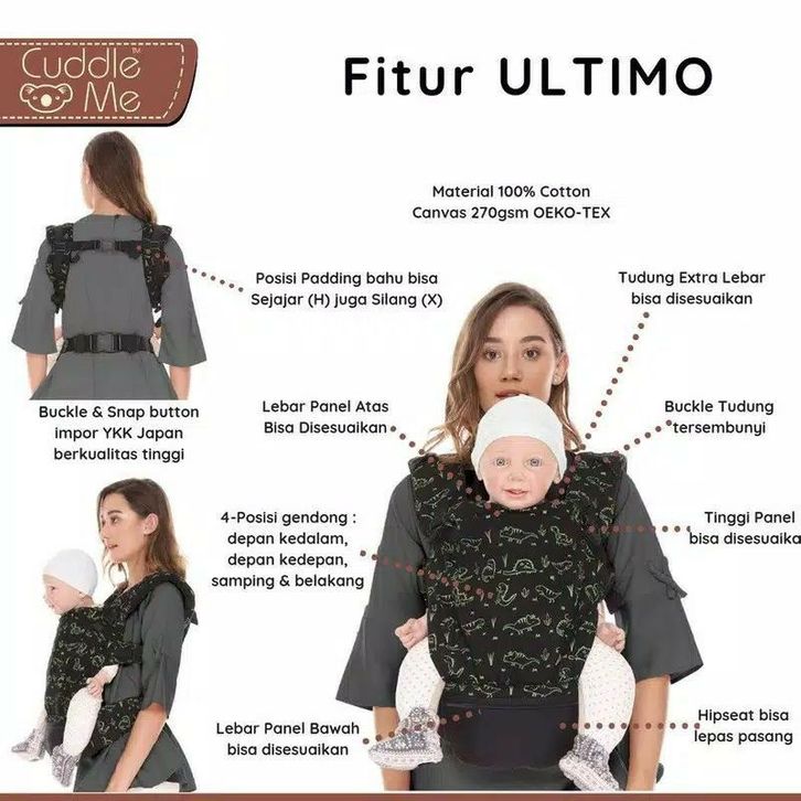 Gendongan Bayi Lucu Gendongan Ultimo Carrier Cuddle Me Motif Embroidery Star Black, Planet, Pacman Black, Starry